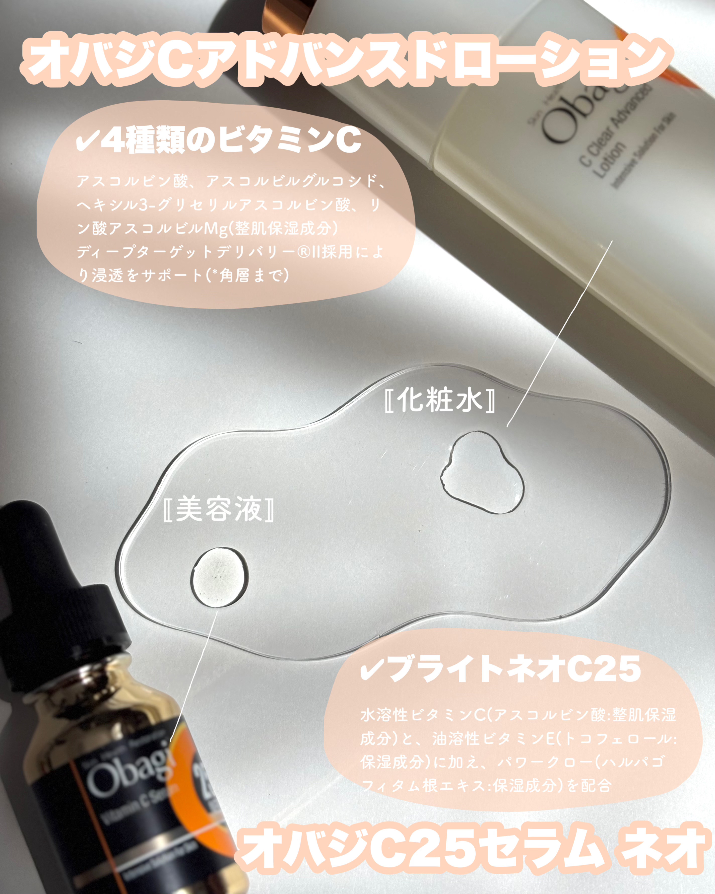 ObagiCクリアアドバンスドローション&C25セラムネオ✨ 濁りのない、うるおい透明感あふれる肌へ導くオバジの化粧水と悩みに合わせてビタミンC*¹濃度で選べる美容液🌟ビタミンC*¹いい研究のオバジだからこその、肌本来の力を引き出し、すこやか...