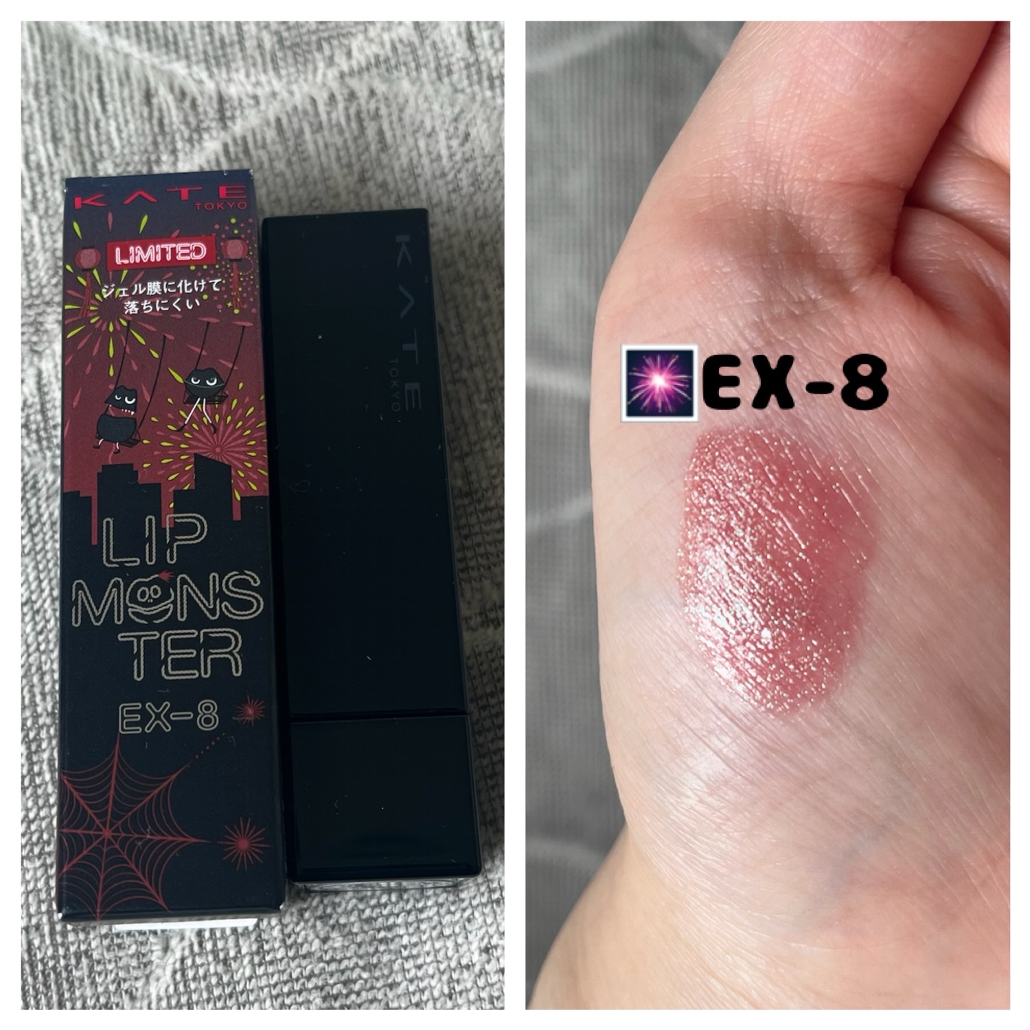 🎇今夏リプモンはラメラメ花火モンスター!2025年5月24日数量限定発売KATEリップモンスターEX-8打ち上げ花火ブランコモンスター界の闇を彩る不思議な花火がテーマになっている、ラメラメきらきらの限定3色🎇私が選んだのはEX-8打ち上げ花火...