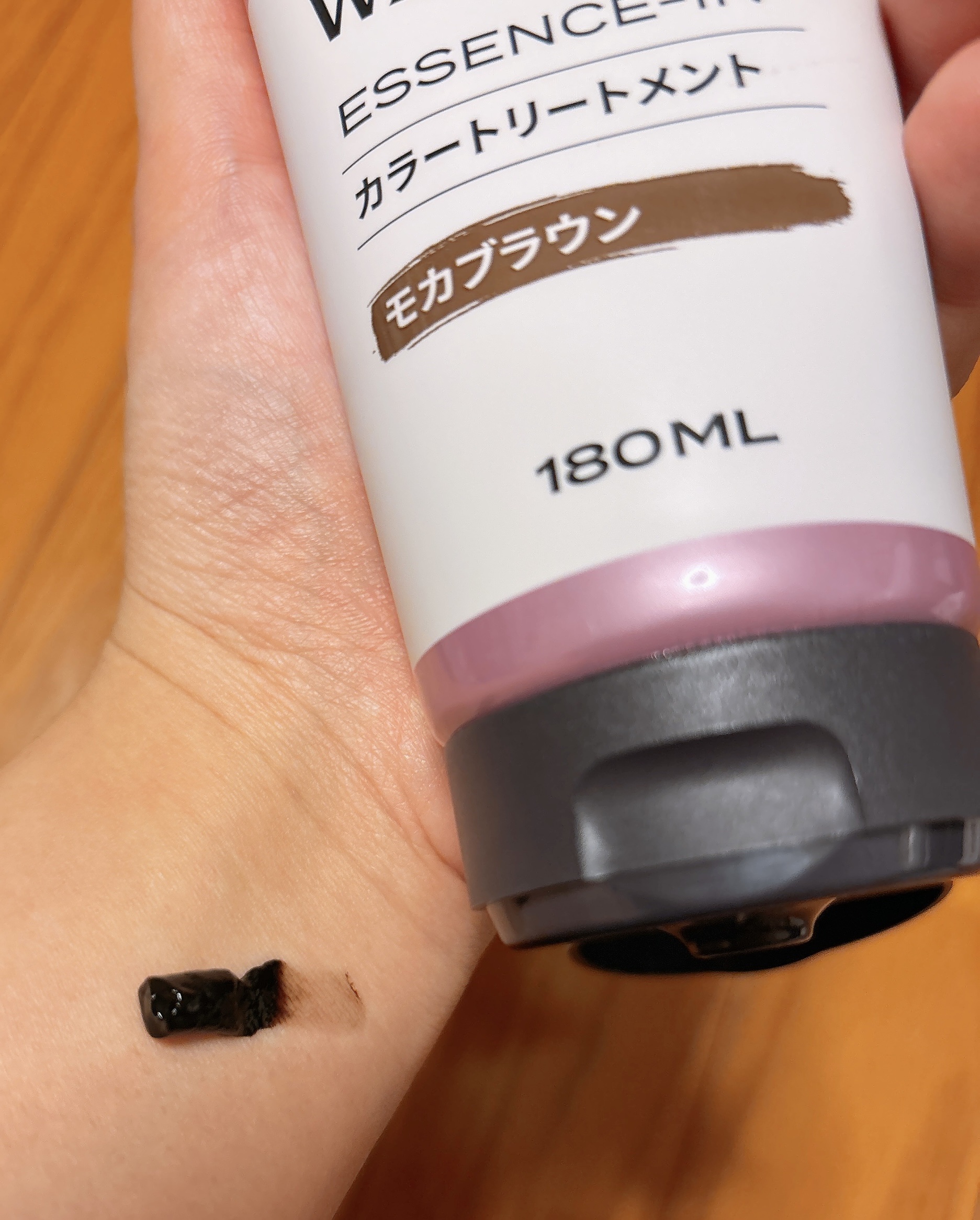 - <キャラメルブラウン> 水、ステアリルアルコール、ベヘントリモニウムメトサルフェート、セタノール、ビスアミノプロピルジメチコン、マカデミア種子油、ホホバ種子油、アボカド油、ヤシ油、アルガニアスピノサ核油、ヒマワリ種子油、フェノキシエタノール、香料、ジセチルジモニウムクロリド、イソプロパノール、HC青12、リン酸K、2−アミノ−6−クロロ−4−ニトロフェノール、PG、EDTA-2Na、エタノールアミン、ヒドロキシエチルセルロース、塩基性赤76、塩基性茶17、HC青16、リナロール、ゲラニオール、シトロネロール、HC赤10、2,6-ジアミノ-3-((ピリジン-3-イル)アゾ)ピリジン、クエン酸、HC赤11、リン酸2Na、ポリソルベート60(コムギ)、リン酸Na、トコフェロール、野菜油 <モカブラウン> 水、ステアリルアルコール、ベヘントリモニウムメトサルフェート、セタノール、ビスアミノプロピルジメチコン、マカデミア種子油、アボカド油、ホホバ種子油、ヤシ油、アルガニアスピノサ核油、ヒマワリ種子油、フェノキシエタノール、香料、ジセチルジモニウムクロリド、イソプロパノール、HC青12、リン酸K、PG、HC青16、EDTA-2Na、2−アミノ−6−クロロ−4−ニトロフェノール、エタノールアミン、塩基性茶17、ヒドロキシエチルセルロース、塩基性赤76、リナロール、HC赤10、ゲラニオール、シトロネロール、2,6-ジアミノ-3-((ピリジン-3-イル)アゾ)ピリジン、クエン酸、HC赤11、リン酸2Na、ポリソルベート60(コムギ)、リン酸Na、トコフェロール、野菜油 <アッシュブラック> 水、ステアリルアルコール、ベヘントリモニウムメトサルフェート、セタノール、ビスアミノプロピルジメチコン、マカデミア種子油、アボカド油、ホホバ種子油、ヤシ油、アルガニアスピノサ核油、ヒマワリ種子油、フェノキシエタノール、HC青12、香料、ジセチルジモニウムクロリド、イソプロパノール、リン酸K、HC青16、PG、EDTA-2Na、エタノールアミン、2−アミノ−6−クロロ−4−ニトロフェノール、ヒドロキシエチルセルロース、HC赤10、塩基性茶17、HC赤11、塩基性赤76、リナロール、ゲラニオール、シトロネロール、クエン酸、2,6-ジアミノ-3-((ピリジン-3-イル)アゾ)ピリジン、リン酸2Na、ポリソルベート60(コムギ)、リン酸Na、トコフェロール、野菜油