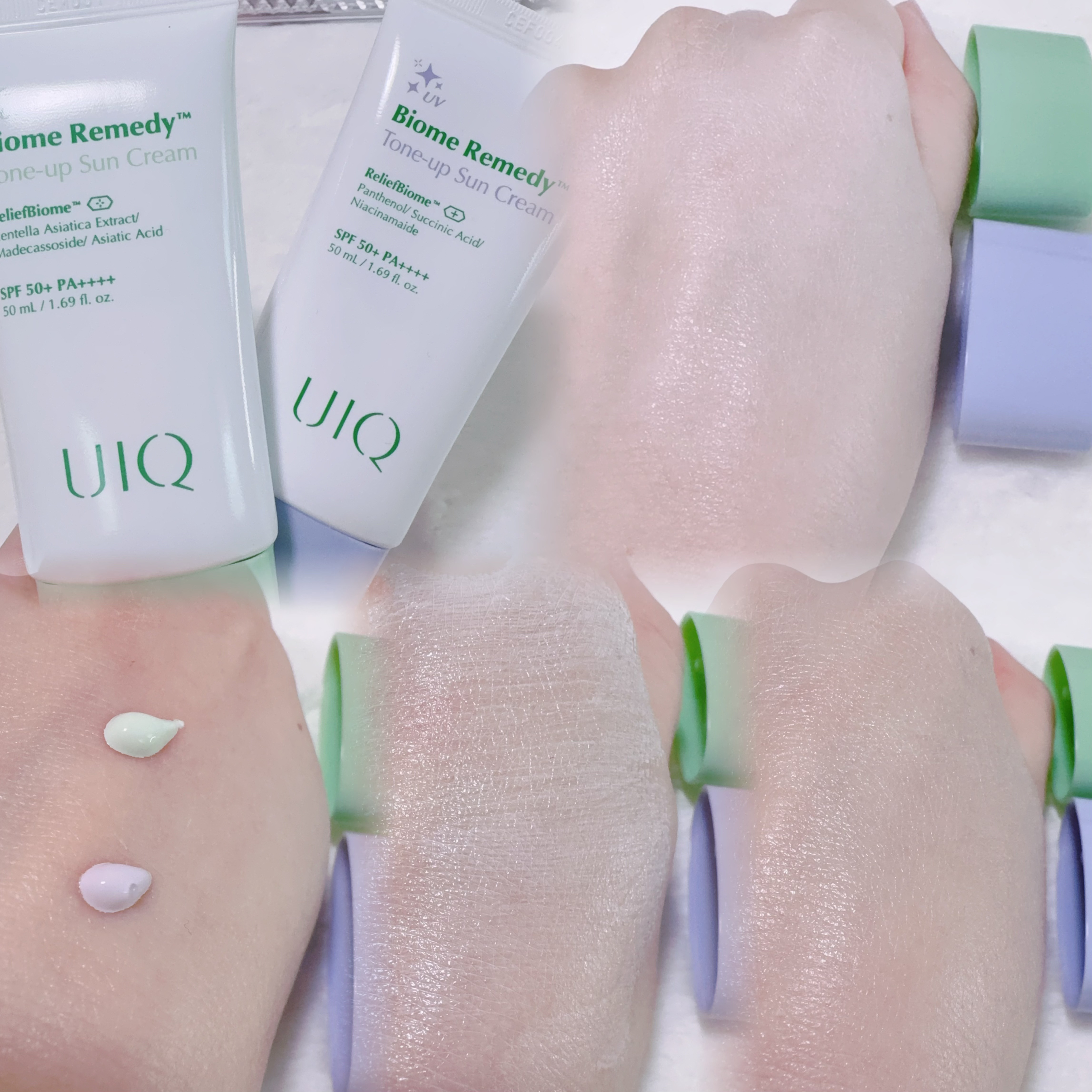 #PRUIQ✔️バイオームレメディパープルトーンアップUVクリーム✔️バイオームレメディグリーントーンアップUVクリームパープルとグリーンのサンクリーム☀️SPF50+PA++++でしっかりUV効果があって、トーンUP効果も!カラーによってく...