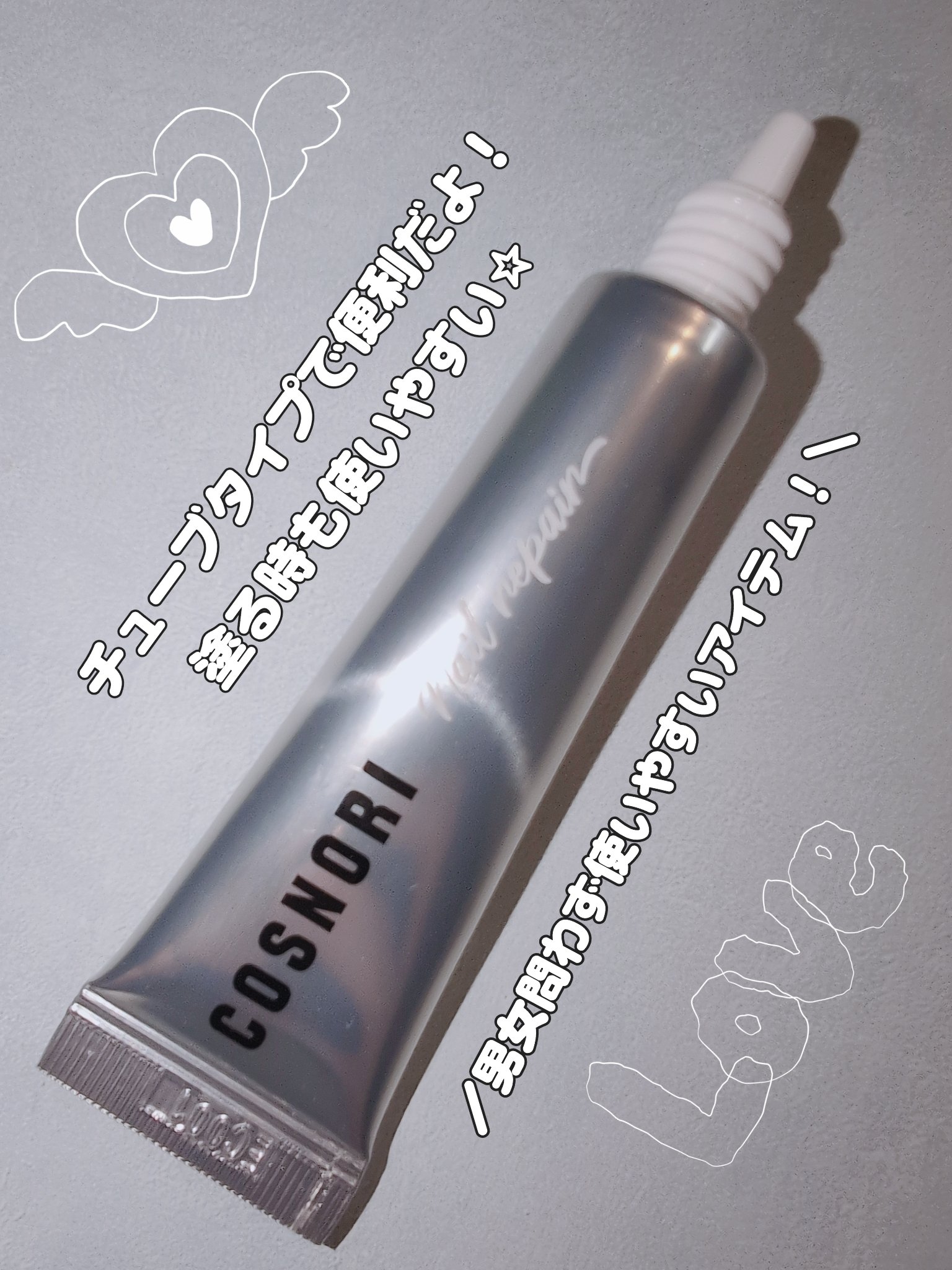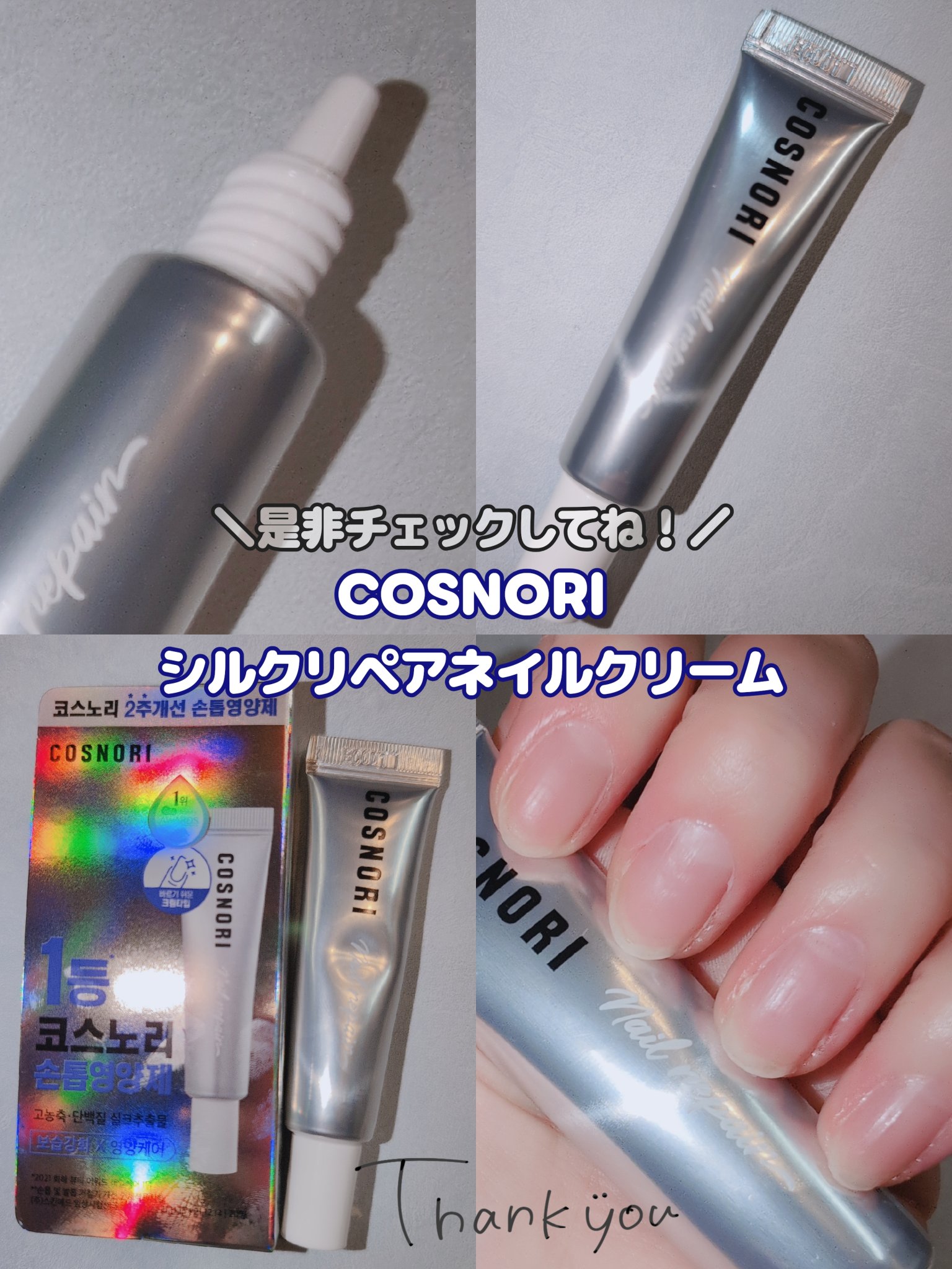 COSNORIシルクリペアネイルクリーム無香料で男女関係なく使いやすいネイルクリーム。テクスチャーは結構こっくりしていますが、馴染むのがはやくべたつきなく使えました爪が割れやすいからケアしていきたい!こまめに塗っても2か月は持つらしいのでコス...