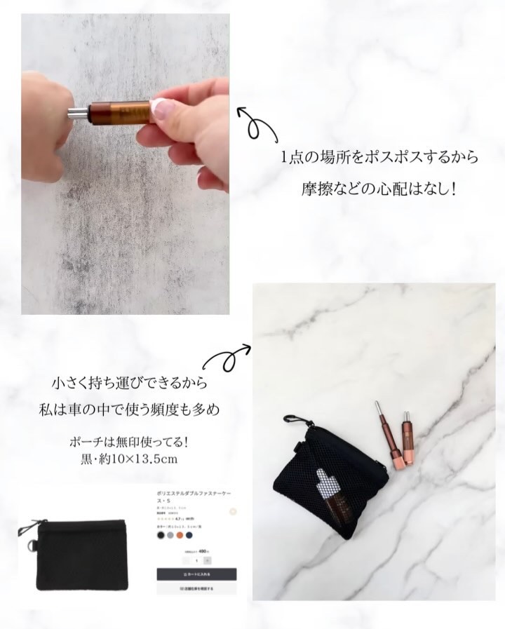 - Face-Pointerの核とも言える内部構造の仕様を変更し機能性と使用感をアップデートしました。 ・プッシュ時の内部の摩擦係数を90%カット。なめらかな滑りでプッシュしやすくなり、押したい部位の捉えやすさを向上 ・動作時の音を大幅軽減し、さらに利用シーンが拡大。どこでも気にせず使用できるように ・肌に触れる先端部に特殊なアクリル系コーティングを追加。金属部分が直接肌に触れないように ・耐久性の向上