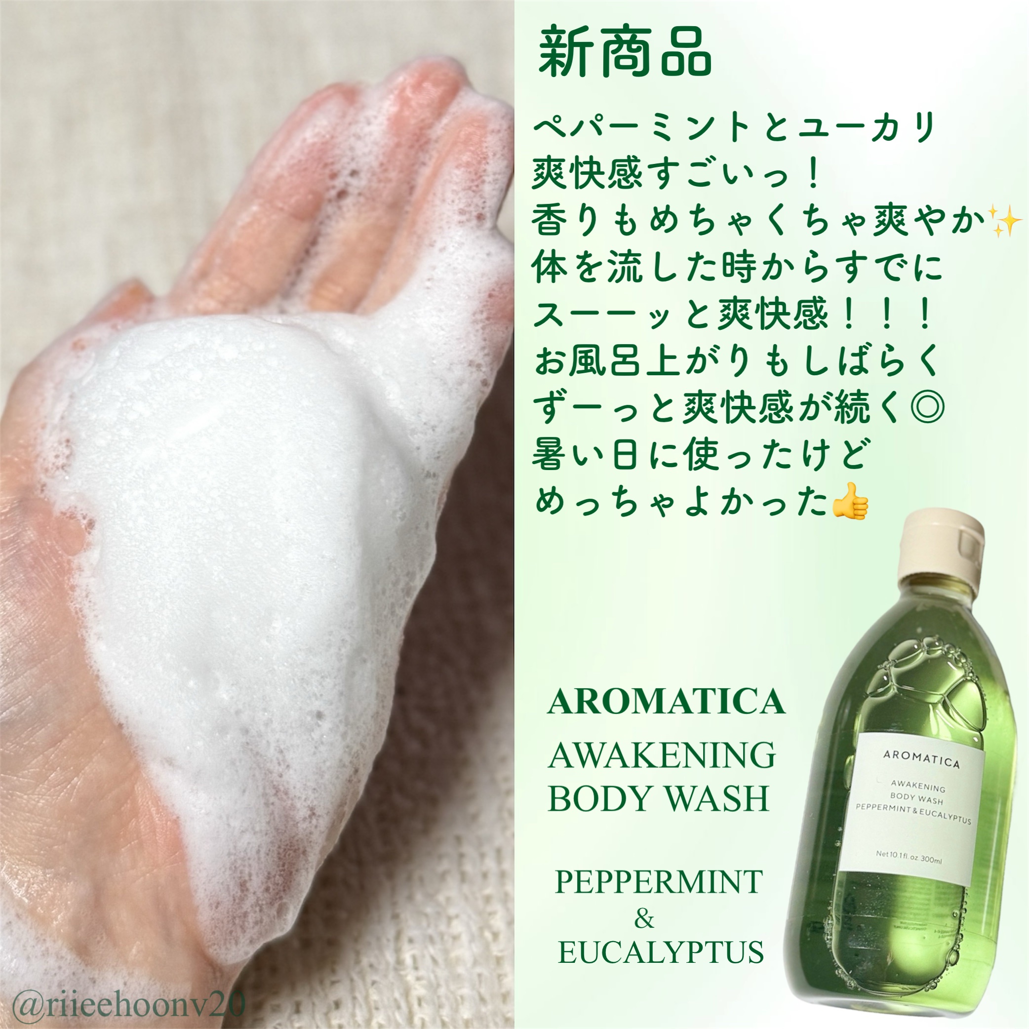 ペパーミントとユーカリの香り🌿𓂃◌𓈒𓐍💚新商品アウェイクニングボディウォッシュ💚アウェイクニングボディオイルペパーミントとユーカリの香りでスッキリシャワーを浴びた瞬間から肌の温度がスーッと下がる🌿𓂃◌𓈒𓐍ホホバオイルが肌に潤いと柔らかさを与え...