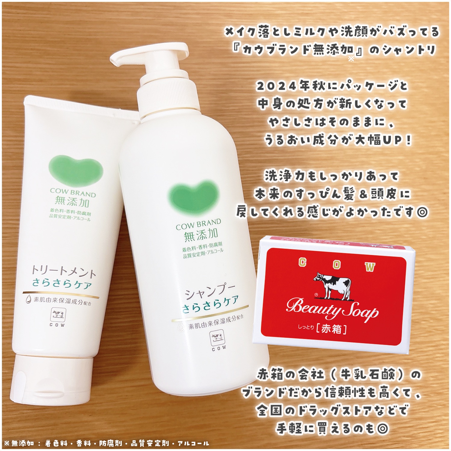 「カウブランド無添加」シリーズにシャンプー&トリートメントもあるの知ってた?👀赤箱の牛乳石鹸のカウブランド無添加。メイク落としミルクや洗顔がSNSでバズっているけどシャントリも見逃せない!🫶24年秋に処方もパッケージも新しく生まれ変わってうる...