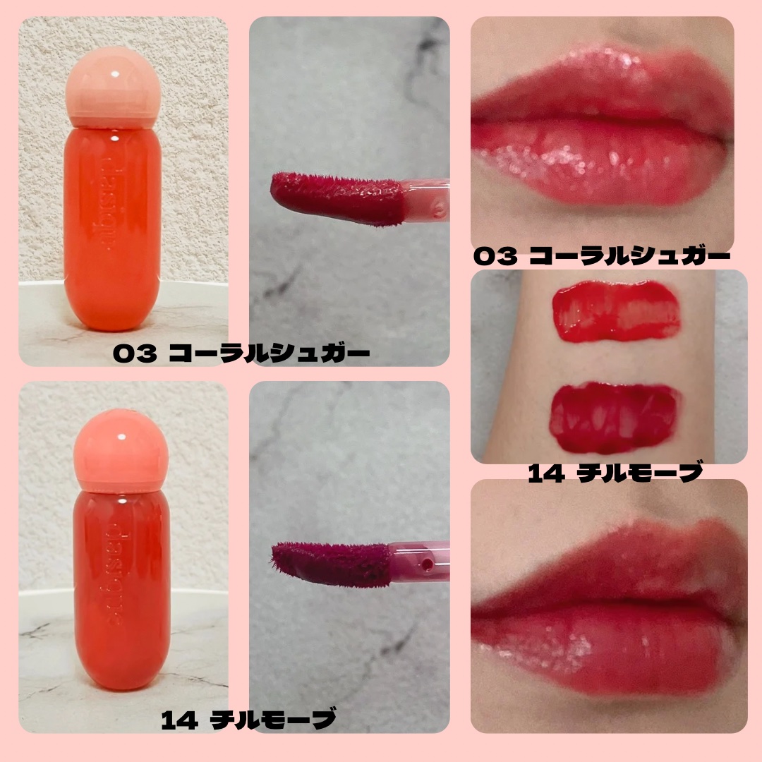 #PRdasiqueさんからジューシーデューイティントをいただきました🩷うる艶むっちり!発色ばっちり!色残りしっかり!な使い心地🥰01~07がイエベさん向け、08~14がブルベさん向けになってて分かりやすい♡私は07と14を試させてもらったよ...