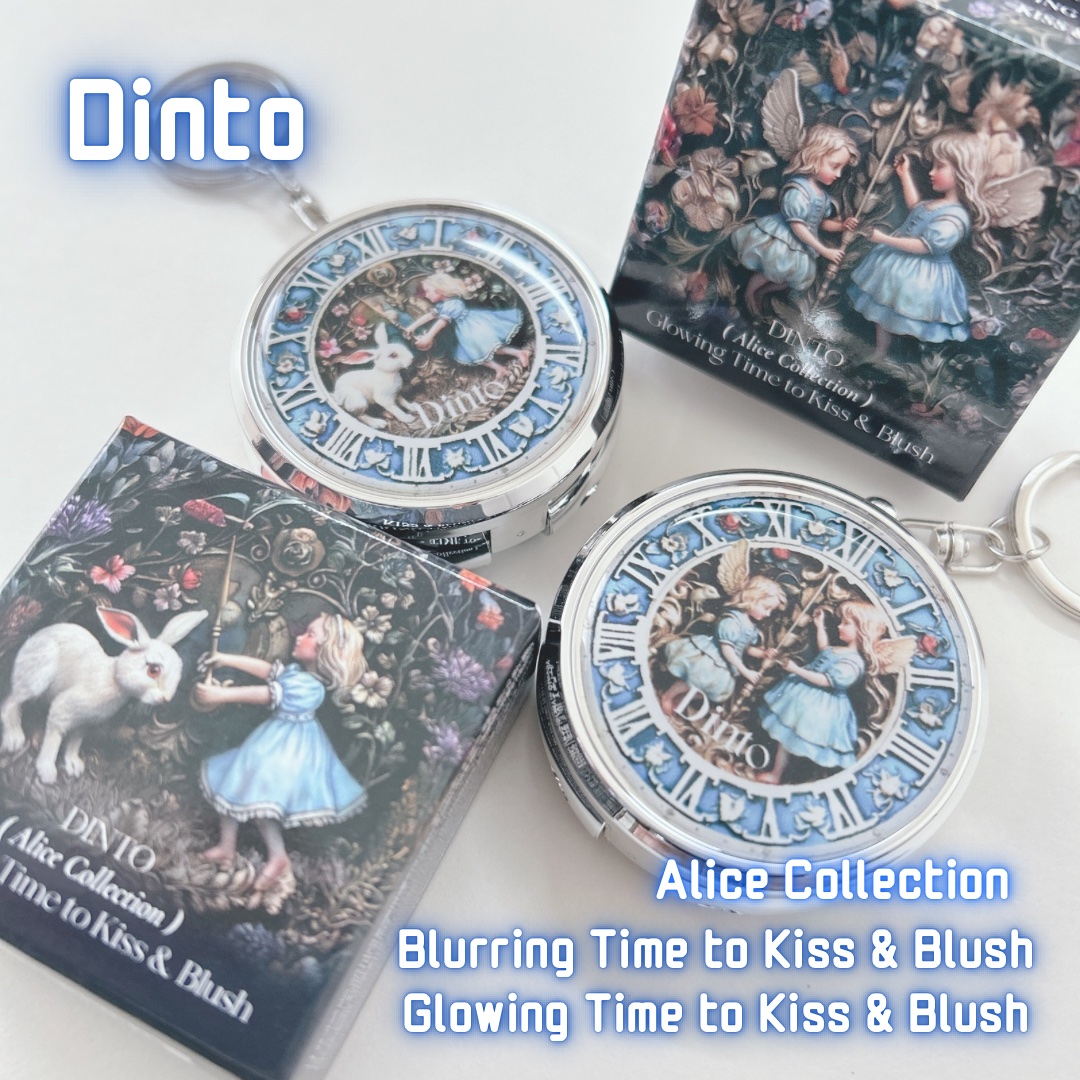 Dinto新作アリスコレクション🐰🕰️💕Dinto BLURRINGTIMETOKISS&BLUSH GLOWINGTIMETOKISS&BLUSHツヤとマットの2種類のリップ&チークで、PC別に14色展開。キーリングになってるから、持ち運ん...