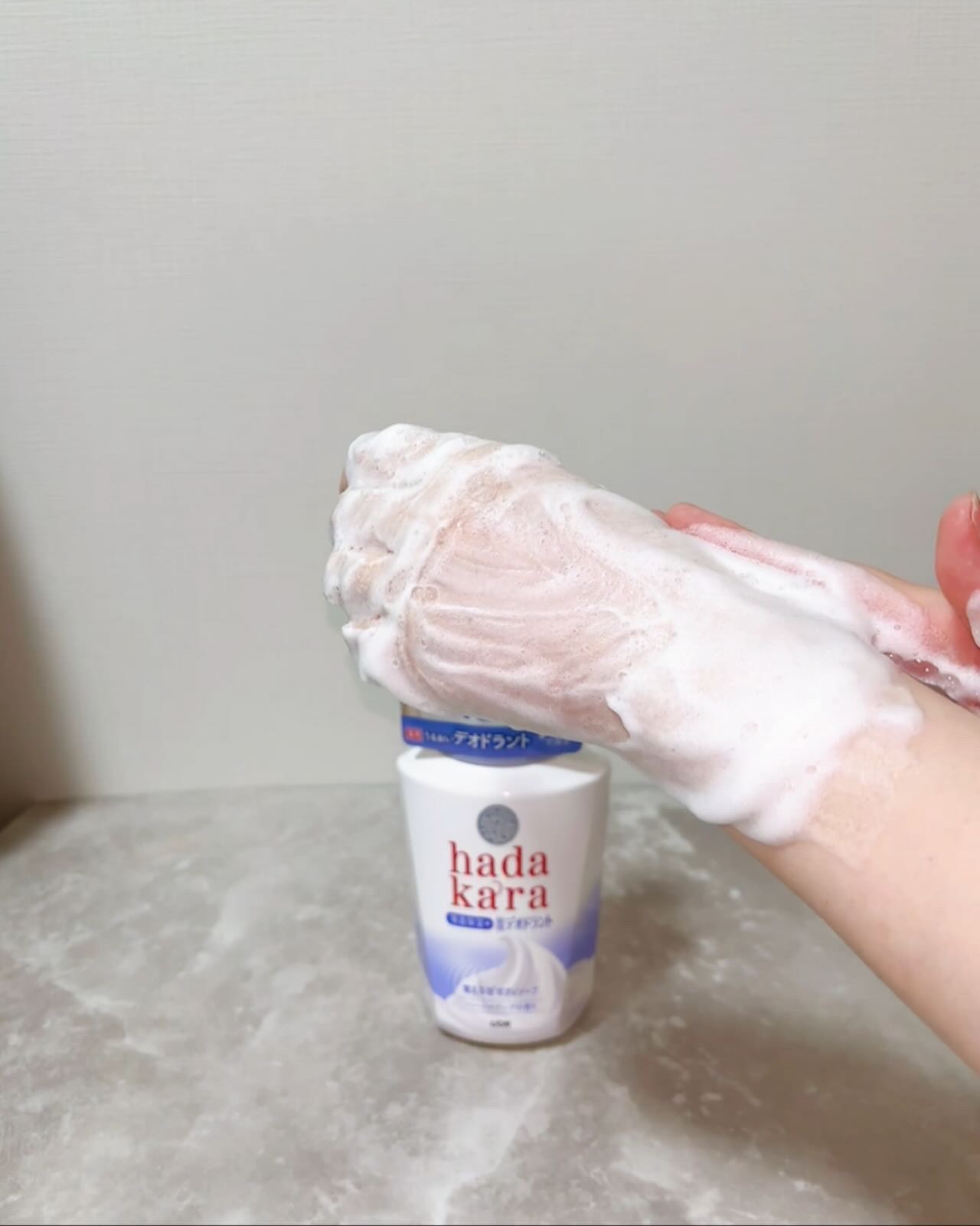 ライオンさまからいただきましたhadakara泡で出てくる薬用デオドラントボディソープをお試しさせていただきました。プッシュするとふわふわの濃密泡が出てきます。泡立てる必要が無く、ふわふわの泡で優しく洗えるのが嬉しいです。もこもこ泡成分で、洗...