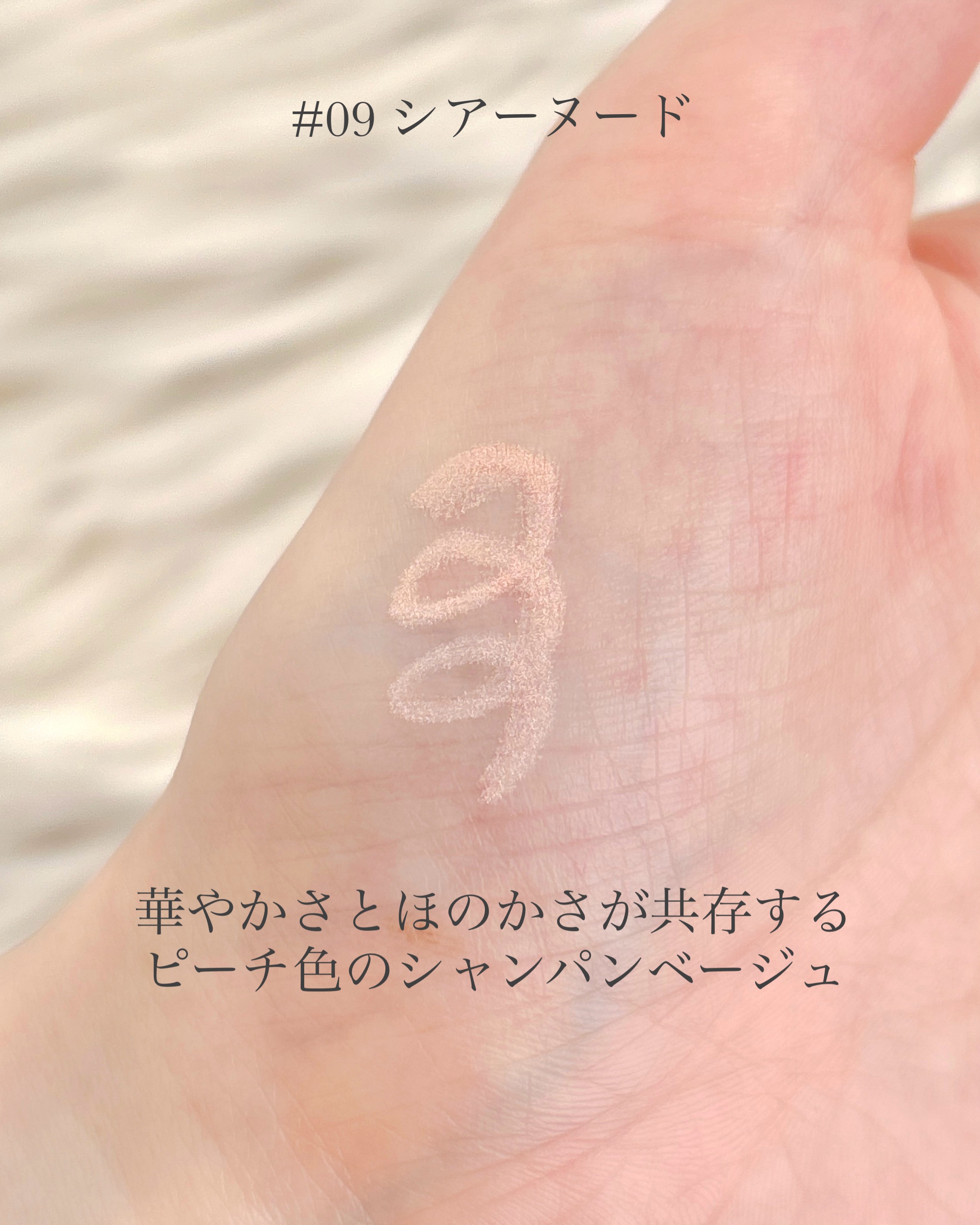 - <#1 Shining Linen(シャイニングリネン) > マイカ、酸化チタン、(ジメチコン/ジビニルジメチコン/シルセスキオキサン)クロスポリマー、シリカ、ナイロン-12、ポリメタクリル酸メチル、ベヘノキシPEG-10ジメチコン、ヤシ油脂肪酸イソアミル、ジメチコン、窒化ホウ素、合成フルオロフロゴパイト、ペンチレングリコール、トリ(ベヘン酸/イソステアリン酸/エイコサン二酸)グリセリル、酸化鉄、カプリリルグリコール、クエン酸トリエチル、ケイ酸(Al/Mg)、エチルヘキシルグリセリン、アルギン酸Na、ポリアクリル酸Na、カプリルヒドロキサム酸、グリセリン、酸化スズ、トコフェロール <#2 Rosy Dew(ロージーデュー)> 酸化チタン、マイカ、(ジメチコン/ジビニルジメチコン/シルセスキオキサン)クロスポリマー、シリカ、ナイロン-12、ポリメタクリル酸メチル、ベヘノキシPEG-10ジメチコン、ヤシ油脂肪酸イソアミル、酸化鉄、ジメチコン、窒化ホウ素、合成フルオロフロゴパイト、ペンチレングリコール、トリ(ベヘン酸/イソステアリン酸/エイコサン二酸)グリセリル、カプリリルグリコール、クエン酸トリエチル、コチニール、ケイ酸(Al/Mg)、エチルヘキシルグリセリン、アルギン酸Na、ポリアクリル酸Na、カプリルヒドロキサム酸、グリセリン、トコフェロール <#8 Scented Bouquet(センティッドブーケ) > マイカ、酸化チタン、(ジメチコン/ジビニルジメチコン/シルセスキオキサン)クロスポリマー、シリカ、ナイロン-12、酸化鉄、ポリメタクリル酸メチル、ベヘノキシPEG-10ジメチコン、ヤシ油脂肪酸イソアミル、ジメチコン、窒化ホウ素、合成フルオロフロゴパイト、ペンチレングリコール、トリ(ベヘン酸/イソステアリン酸/エイコサン二酸)グリセリル、カプリリルグリコール、クエン酸トリエチル、コチニール、ケイ酸(Al/Mg)、エチルヘキシルグリセリン、アルギン酸Na、ポリアクリル酸Na、カプリルヒドロキサム酸、グリセリン、トコフェロール <#9 Sheer Nude(シアーヌード)> マイカ、酸化チタン、(ジメチコン/ジビニルジメチコン/シルセスキオキサン)クロスポリマー、シリカ、ナイロン-12、ポリメタクリル酸メチル、ベヘノキシPEG-10ジメチコン、ヤシ油脂肪酸イソアミル、ジメチコン、窒化ホウ素、酸化鉄、合成フルオロフロゴパイト、ペンチレングリコール、トリ(ベヘン酸/イソステアリン酸/エイコサン二酸)グリセリル、カプリリルグリコール、クエン酸トリエチル、ケイ酸(Al/Mg)、エチルヘキシルグリセリン、アルギン酸Na、ポリアクリル酸Na、カプリルヒドロキサム酸、グリセリン、トコフェロール <#10 Classy Fig(クラッシィーフィグ)> マイカ、酸化チタン、(ジメチコン/ジビニルジメチコン/シルセスキオキサン)クロスポリマー、ホウケイ酸(Ca/Na)、シリカ、酸化鉄、ナイロン-12、ポリメタクリル酸メチル、ベヘノキシPEG-10ジメチコン、ヤシ油脂肪酸イソアミル、ジメチコン、窒化ホウ素、合成フルオロフロゴパイト、ペンチレングリコール、トリ(ベヘン酸/イソステアリン酸/エイコサン二酸)グリセリル、カプリリルグリコール、クエン酸トリエチル、ケイ酸(Al/Mg)、カルミン、エチルヘキシルグリセリン、アルギン酸Na、ポリアクリル酸Na、カプリルヒドロキサム酸、グリセリン、酸化スズ、トコフェロール <#11 Dew Beige(デューベージュ)> 酸化チタン、マイカ、ホウケイ酸(Ca/Na)、(ジメチコン/ジビニルジメチコン/シルセスキオキサン)クロスポリマー、シリカ、ナイロン-12、ポリメタクリル酸メチル、ベヘノキシPEG-10ジメチコン、ヤシ油脂肪酸イソアミル、ジメチコン、窒化ホウ素、合成フルオロフロゴパイト、ペンチレングリコール、トリ(ベヘン酸/イソステアリン酸/エイコサン二酸)グリセリル、カプリリルグリコール、クエン酸トリエチル、ケイ酸(Al/Mg)、酸化鉄、エチルヘキシルグリセリン、アルギン酸Na、ポリアクリル酸Na、カプリルヒドロキサム酸、グリセリン、酸化スズ、コチニール、マルトデキストリン、トコフェロール