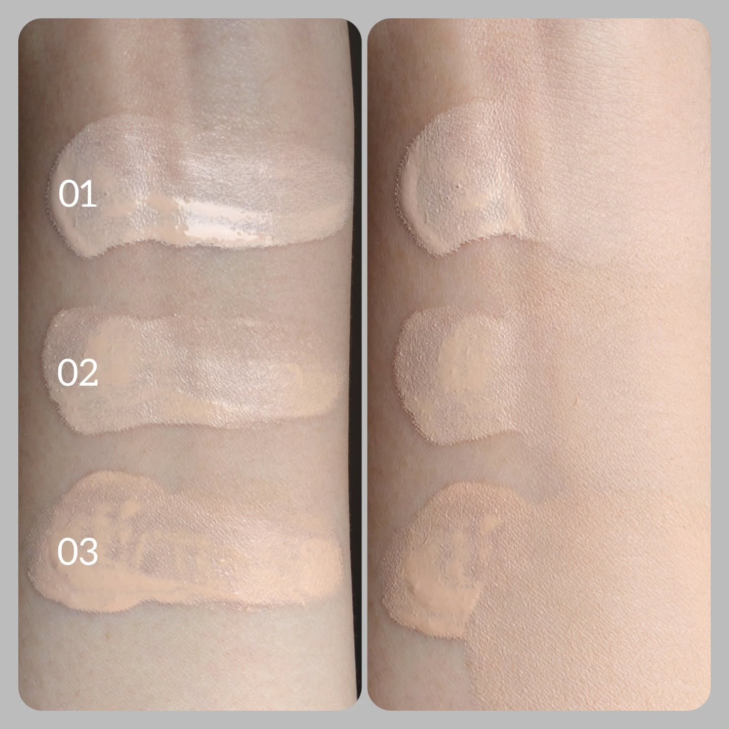 イルミの01が最もキラキラが強く、並べてみるとほんの少し緑を感じるので赤みカバーができるかも 02はくすみに 03は血色感でピンクの濃さはのばすと肌になじむ ブライトはカバー力高めでややさっぱり UVはイルミ同様みずみずしくてSPF値高め イルミ01〜03はのばすとパール感薄まるのでハイライターとしても使える ブライトは他よりカバー力高いかわりに若干キシキシを感じる UVはツヤと質感のバランスがいいけどみずみずしいから夏にはちょっと崩れやすいかも
