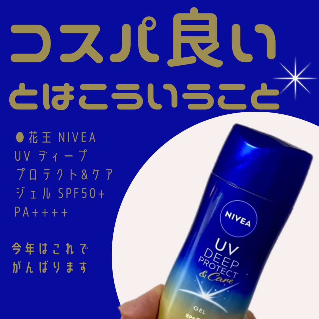ニベアUVディーププロテクト&ケアジェルSPF50+/PA++++ニベア花王からいただきました!知らなかったのですがこの度リニューアル👏シミの原因となるUV-Bも、シミやハリ・弾力低下の原因となるUV-Aもしっかりブロック💥せっけんで落とせる...