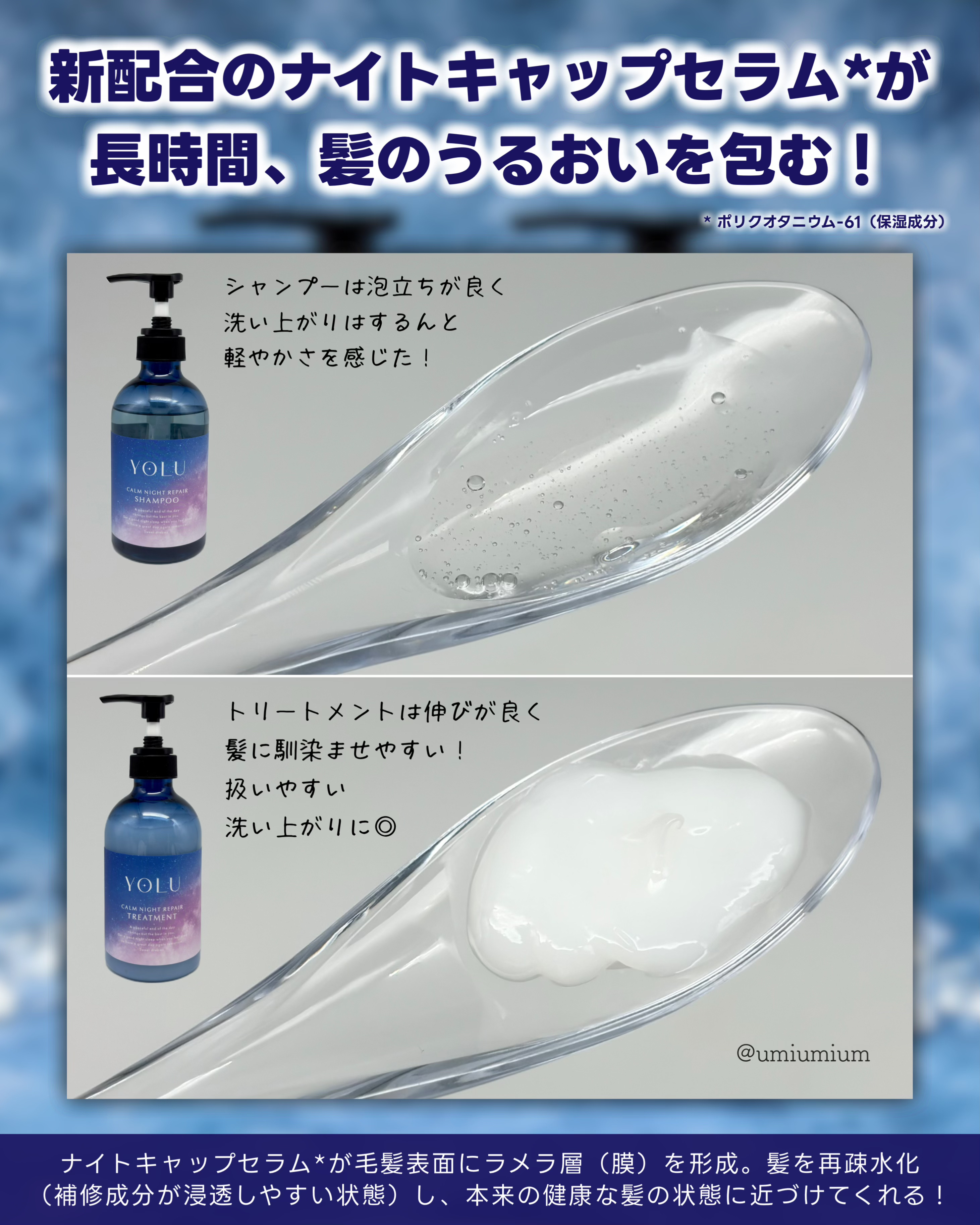 商品詳細情報YOLU カームナイトリペアシャンプー/トリートメント