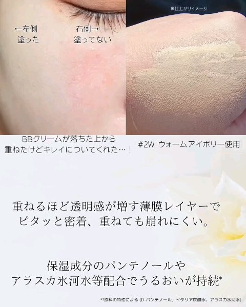 - <#1 ホスリン> 精製水、酸化チタン (CI 77891)、サイクロペンタシロキサン、エチルヘキシルメトキシシンナメート、イソドデカン、エチルヘキシルサリチレート、メチルトリメチコン、ラウリルPEG-9ポリジメチルシロキシエチルジメチコン、ジフェニルシロキシフェニルトリメチコン、グリセリン、プロパンジオール、ブチレングリコールジカプリレート/ジカプレート、ナイアシンアミド、トリメチルシロキシケイ酸、1,2-ヘキサンジオール、ジステアジモニウムヘクトライト、ビフィダ発酵溶解物、ガラクトミセス発酵液、ヒアルロン酸、加水分解ヒアルロン酸、ヒアルロン酸Na、PEG-10ジメチコン、トリデシルトリメリテート、ジメチコン、アクリレーツ/ステアリルアクリレーツ/ジメチコンメタクリレートコポリマー、硫酸マグネシウム、ジメチコン/ビニルジメチコンクロスポリマー、合成フルオロフロゴパイト、ポリグリセリル-3ポリジメチルシロキシエチルジメチコン、オクチルドデカノール、ポリヒドロキシステアリン酸、ステアリン酸、アルミナ、水酸化アルミニウム、トリエトキシカプリリルシラン、エチルヘキシルパルミテート、イソプロピルミリステート、イソステアリン酸、レシチン、ポリグリセリル-4イソステアレート、アデノシン、トリソジウムエチレンジアミンジコハク酸、ポリグリセリル-3ポリリシノレイン酸、イソプロピルチタニウムトリイソステアレート、ネオペンチルグリコールジエチルヘキサノエート、PEG-9ポリジメチルシロキシエチルジメチコン、トコフェロール、ポリプロピルシルセスキオキサン、ブチレングリコール、エチルヘキシルグリセリン、香料、酸化鉄黄 (CI 77492)、酸化鉄赤 (CI 77491)、酸化鉄黒 (CI 77499) <#2c クールペタル> 精製水、酸化チタン (CI 77891)、サイクロペンタシロキサン、エチルヘキシルメトキシシンナメート、イソドデカン、エチルヘキシルサリチレート、メチルトリメチコン、ラウリルPEG-9ポリジメチルシロキシエチルジメチコン、ジフェニルシロキシフェニルトリメチコン、グリセリン、プロパンジオール、ブチレングリコールジカプリレート/ジカプレート、ナイアシンアミド、トリメチルシロキシケイ酸、1,2-ヘキサンジオール、ジステアジモニウムヘクトライト、ビフィダ発酵溶解物、ガラクトミセス発酵液、ヒアルロン酸、加水分解ヒアルロン酸、ヒアルロン酸Na、PEG-10ジメチコン、トリデシルトリメリテート、ジメチコン、アクリレーツ/ステアリルアクリレーツ/ジメチコンメタクリレートコポリマー、硫酸マグネシウム、ジメチコン/ビニルジメチコンクロスポリマー、オクチルドデカノール、合成フルオロフロゴパイト、ポリグリセリル-3ポリジメチルシロキシエチルジメチコン、ポリヒドロキシステアリン酸、ステアリン酸、アルミナ、水酸化アルミニウム、トリエトキシカプリリルシラン、ポリグリセリル-4イソステアレート、エチルヘキシルパルミテート、イソプロピルミリステート、イソステアリン酸、レシチン、アデノシン、トリソジウムエチレンジアミンジコハク酸、ポリグリセリル-3ポリリシノレイン酸、イソプロピルチタニウムトリイソステアレート、ネオペンチルグリコールジエチルヘキサノエート、PEG-9ポリジメチルシロキシエチルジメチコン、トコフェロール、ポリプロピルシルセスキオキサン、ブチレングリコール、エチルヘキシルグリセリン、香料、酸化鉄黄 (CI 77492)、酸化鉄赤 (CI 77491)、酸化鉄黒 (CI 77499) <#2w ウォームアイボリー> 精製水、酸化チタン(CI 77891)、サイクロペンタシロキサン、エチルヘキシルメトキシシンナメート、イソドデカン、エチルヘキシルサリチレート、メチルトリメチコン、ラウリルPEG-9ポリジメチルシロキシエチルジメチコン、ジフェニルシロキシフェニルトリメチコン、グリセリン、プロパンジオール、ブチレングリコールジカプリレート/ジカプレート、ナイアシンアミド、トリメチルシロキシケイ酸、1,2-ヘキサンジオール、ジステアジモニウムヘクトライト、ビフィダ発酵溶解物、ガラクトミセス発酵液、ヒアルロン酸、加水分解ヒアルロン酸、ヒアルロン酸Na、PEG-10ジメチコン、トリデシルトリメリテート、ジメチコン、アクリレーツ/ステアリルアクリレーツ/ジメチコンメタクリレートコポリマー、硫酸マグネシウム、ジメチコン/ビニルジメチコンクロスポリマー、オクチルドデカノール、合成フルオロフロゴパイト、ポリグリセリル-3ポリジメチルシロキシエチルジメチコン、ポリヒドロキシステアリン酸、ステアリン酸、アルミナ、水酸化アルミニウム、トリエトキシカプリリルシラン、ポリグリセリル-4イソステアレート、エチルヘキシルパルミテート、イソプロピルミリステート、イソステアリン酸、レシチン、アデノシン、トリソジウムエチレンジアミンジコハク酸、ポリグリセリル-3ポリリシノレイン酸、イソプロピルチタニウムトリイソステアレート、ネオペンチルグリコールジエチルヘキサノエー