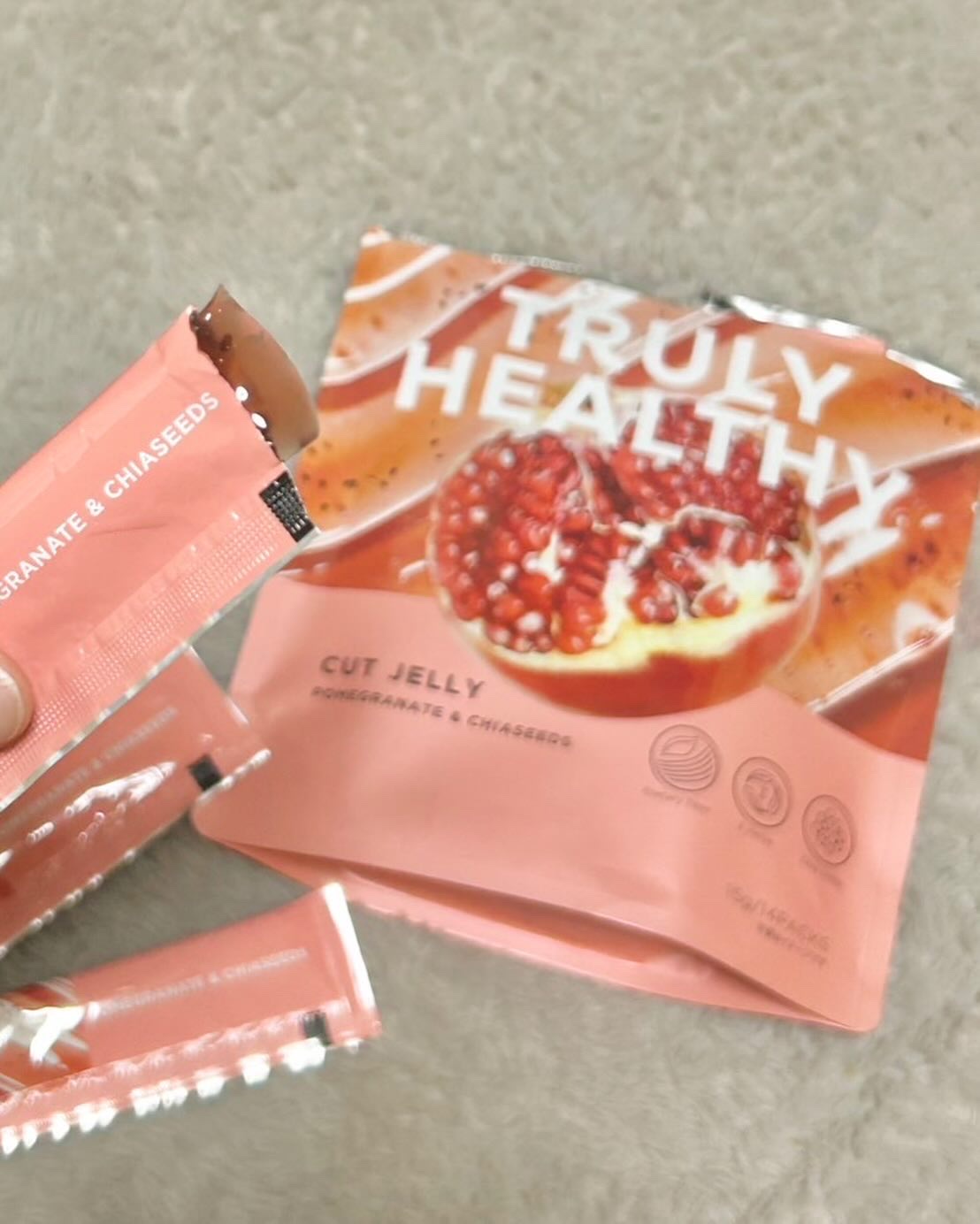- ダイエット*ゼリーTRULY HEALTHYシリーズ。 食べ過ぎ&高カロリーの罪悪感を減らす!ギルトフリーなカットゼリー!ザクロ味 水溶性食物繊維(イソマルトデキストリン)と3種のハーブ(白いんげん豆エキス、サラシアエキス、ギムネマ)が大活躍! こんな時にぴったり ✔️ 食べ過ぎたあとに ✔️ ダイエット中の栄養補給、間食に ✔️ 満足感がほしいときに チアシード配合。食感による満足感も◎!カロリーをコントロールしてキレイなカラダをサポート。 *食事の置き換えとして