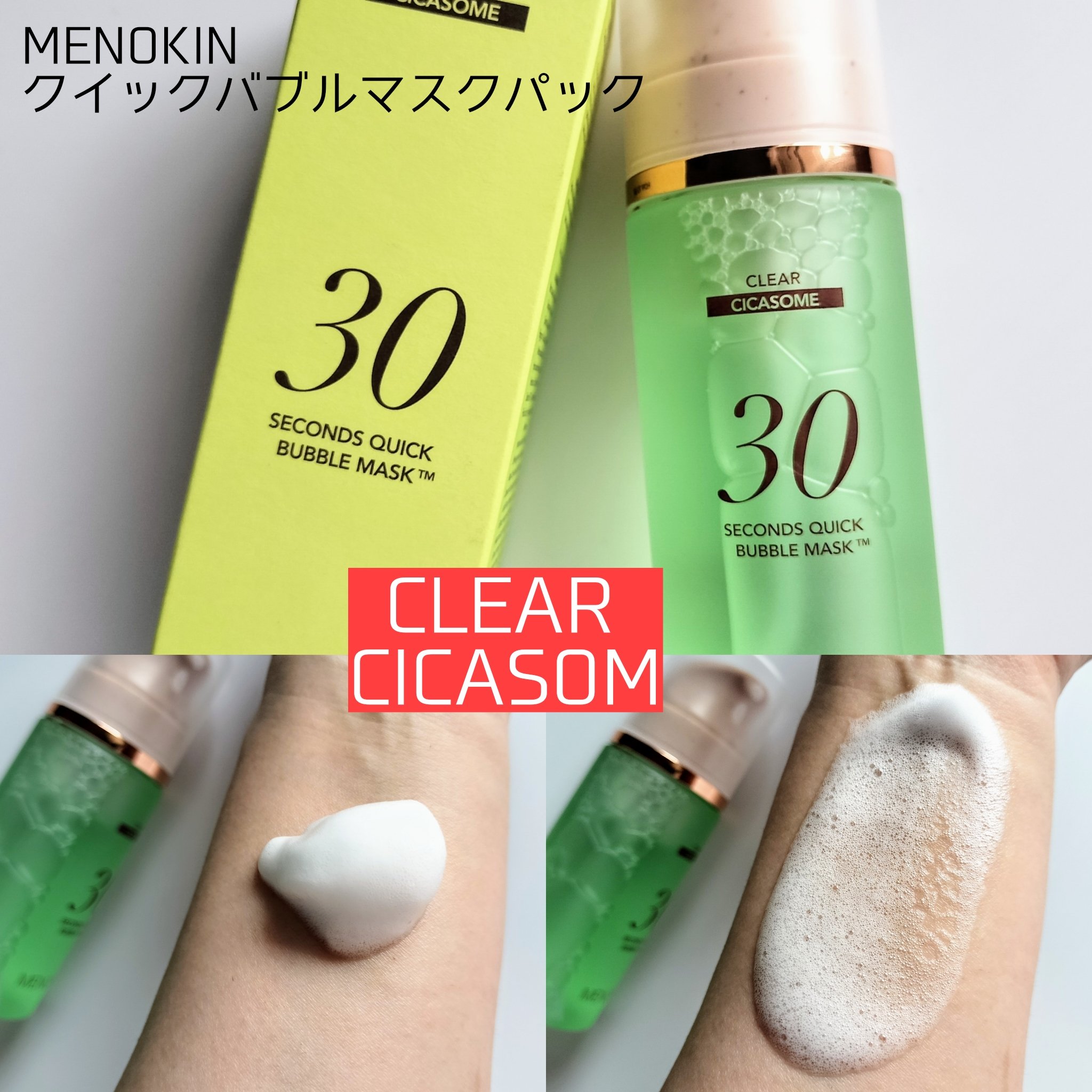 MENOKIN30秒クイックバブルマスク\NOシート・NOウォッシュのバブルマスク30秒でつや肌に♡/【製品】✔️バブルを手に1.5回プッシュして顔に塗り、30秒間バブルを伸ばすだけでケアできるバブルマスク♡✔️MOISTうるおいタイプは8種...