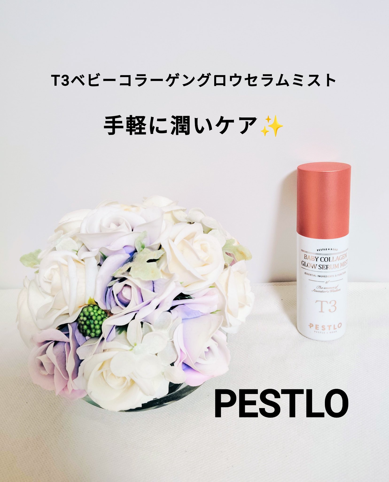 pestlo_japan様の公式アンバサダーに選んで頂きました〜これから良さを皆さんにお伝え出来る様に頑張ります!T3BABYCOLLAGENGLOWSERMMISTPESTLOの人気商品T3シリーズからミストが登場しました!何とT3コラーゲ...