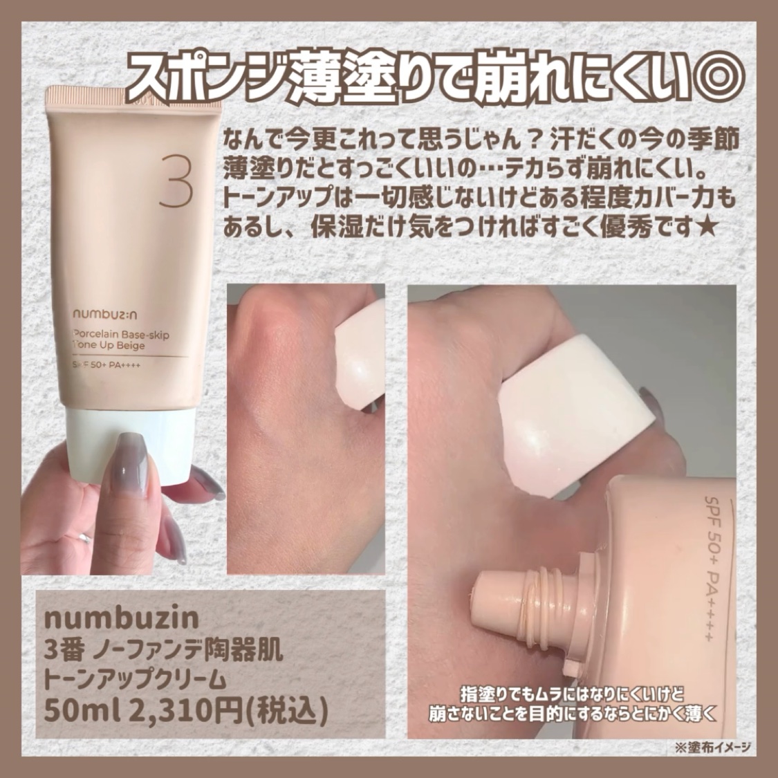 numbuzin 3番 ノーファンデ陶器肌トーンアップクリーム | 2,310円 |