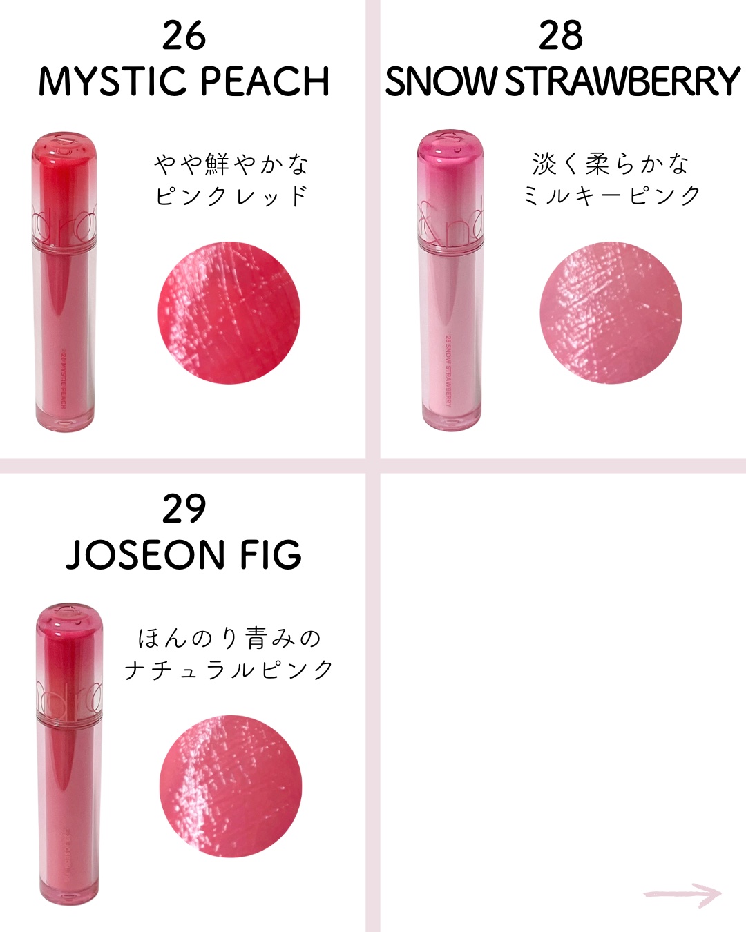 @fiorie_kurumi☜他の投稿はこちらロムアンドの定番人気リップ、ザジューシーラスティングティント全29色(数量限定の25ブラックベリーを除く)をまとめました!明るめ〜暗め、鮮やかから穏やか、クリア〜スモーキー、黄みしっかり〜青みしっ...