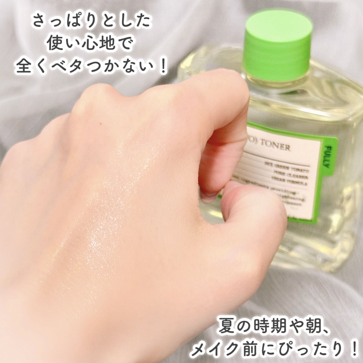 #PRFULLY(@FullyJP)グリーントマトトナーグリーントマトクレイマスククレンザー生クリームみたいなふわふわ泡の洗顔のあとに、トナーを使うとしっとりうるおったような感じに✨べたつかずさっぱりしているから、朝のスキンケアやこれからの季...