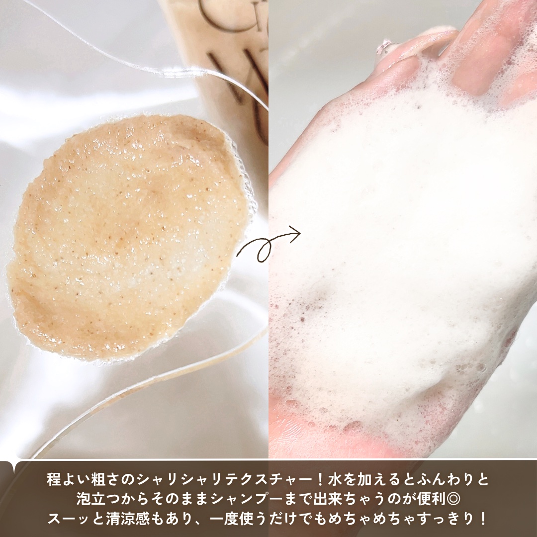 - 健康な毛髪と頭皮管理のためのスケーリング剤。週2回シャンプーの代わりに使うだけで、頭皮の皮脂や汚れなどの老廃物を除去しながらお家で簡単にスパ気分!
