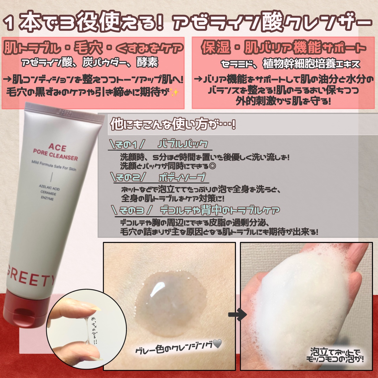 これ1本で全身つるつるに🫧🩶美しくなりたい_「欲望」叶えるクレンザー🩶 ︎︎ 🔖.·GREETY.〈グリティー〉エースポアクレンザー120ml 👨🎓『エース(ACE)』とは?A⋯アゼライン酸C⋯セラミドE⋯酵素から成って、色んな肌トラブル...