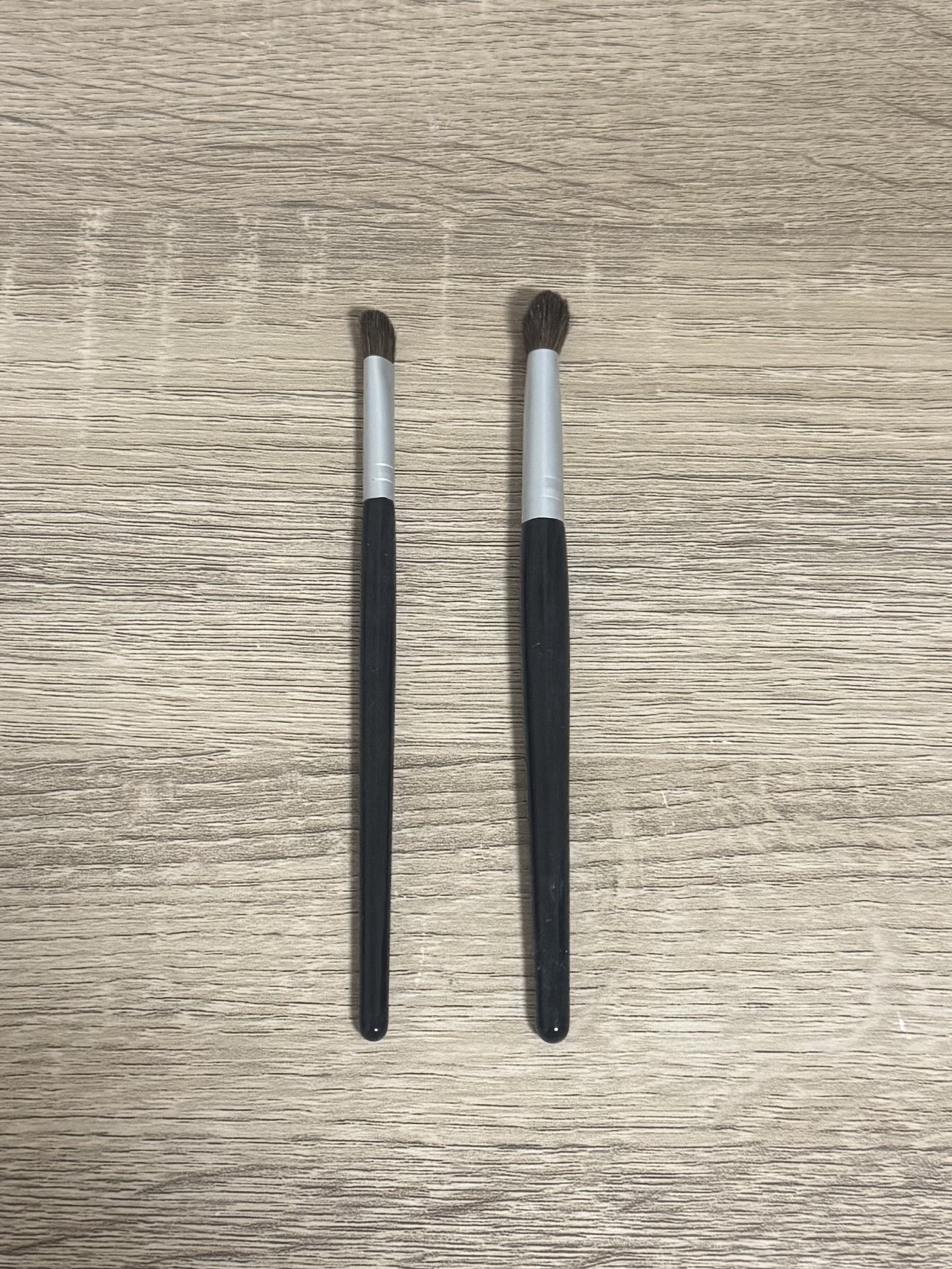 - 肌にやさしい天然毛100%のアイシャドウ用ブラシ。まぶた全体用の太ブラシと目の際用の細ブラシのセットです。微妙な色使いも、ムラにならず美しい仕上がりに。チップは天然毛(うま毛)、軸は木・アルミニウム。パッケージをリニューアルして登場。