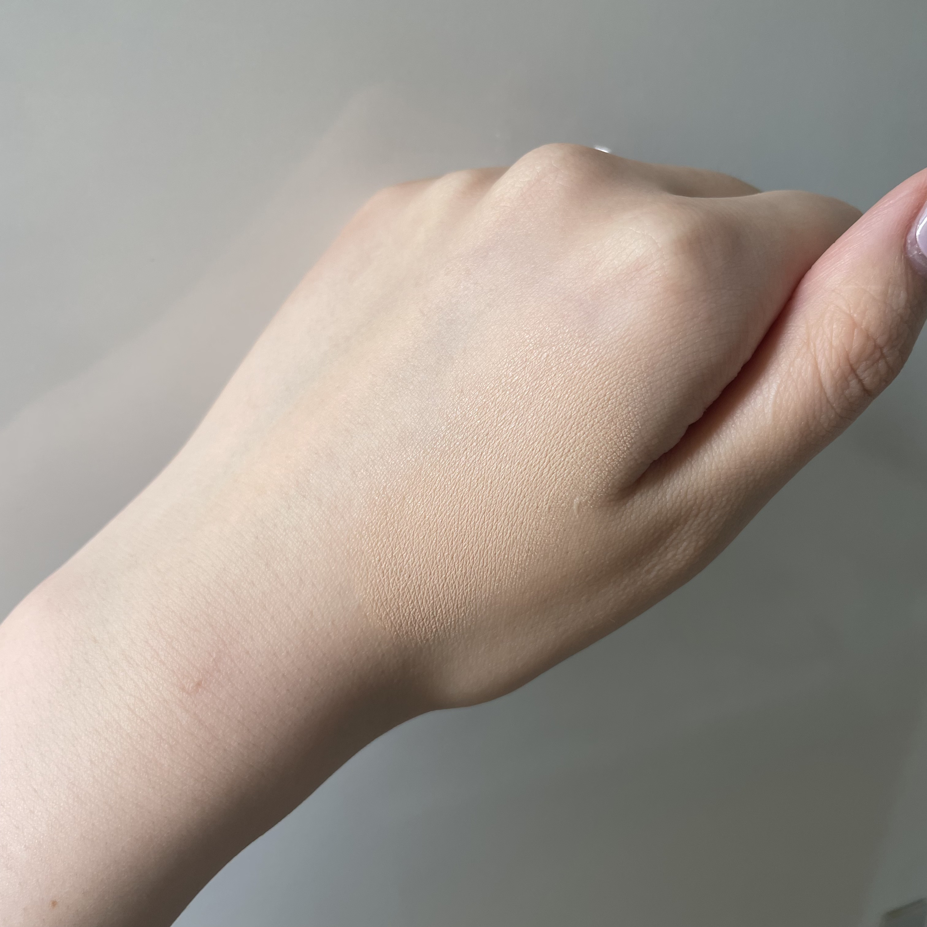 手にとってみた時のテクスチャーは既存のウォータースプラッシュサンクリームと比べると若干重めに感じましたが、肌に馴染ませると変わらず伸びが良いです! まず試しに手に塗ってみた時点で自然なツヤ感とトーンアップ効果に感動✨✨ファンデせずにこれだけでも肌を綺麗に見せてくれます! もちろん顔にも使ってみましたが、セラミド、ペプチド配合で保湿力もアップしたとのことでしたが、朝塗って夜まで乾燥が気になりませんでした! 皮膚科テスト完了、ヴィーガン認証もされているので、敏感肌でも安心して使えます。 そして、既存のタイプに比べてマイルドな香りになった気がします!私は前の香りも好きでしたが、こちらはさらにふんわりとやさしく香ります。