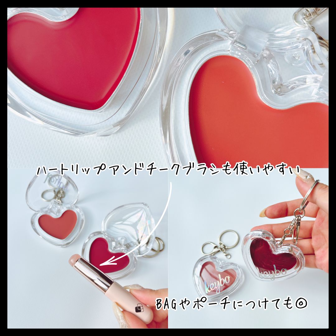 keybo🛒@keybo_cosmetic@keybo_jpハートキーリングリップアンドチークハートリップアンドチークブラシカバンにつけてたら「え?ガチャじゃなくて本物なの⁉️」って友達に驚かれた🤭💖このハートチャーム、リアルに可愛すぎるのよ...