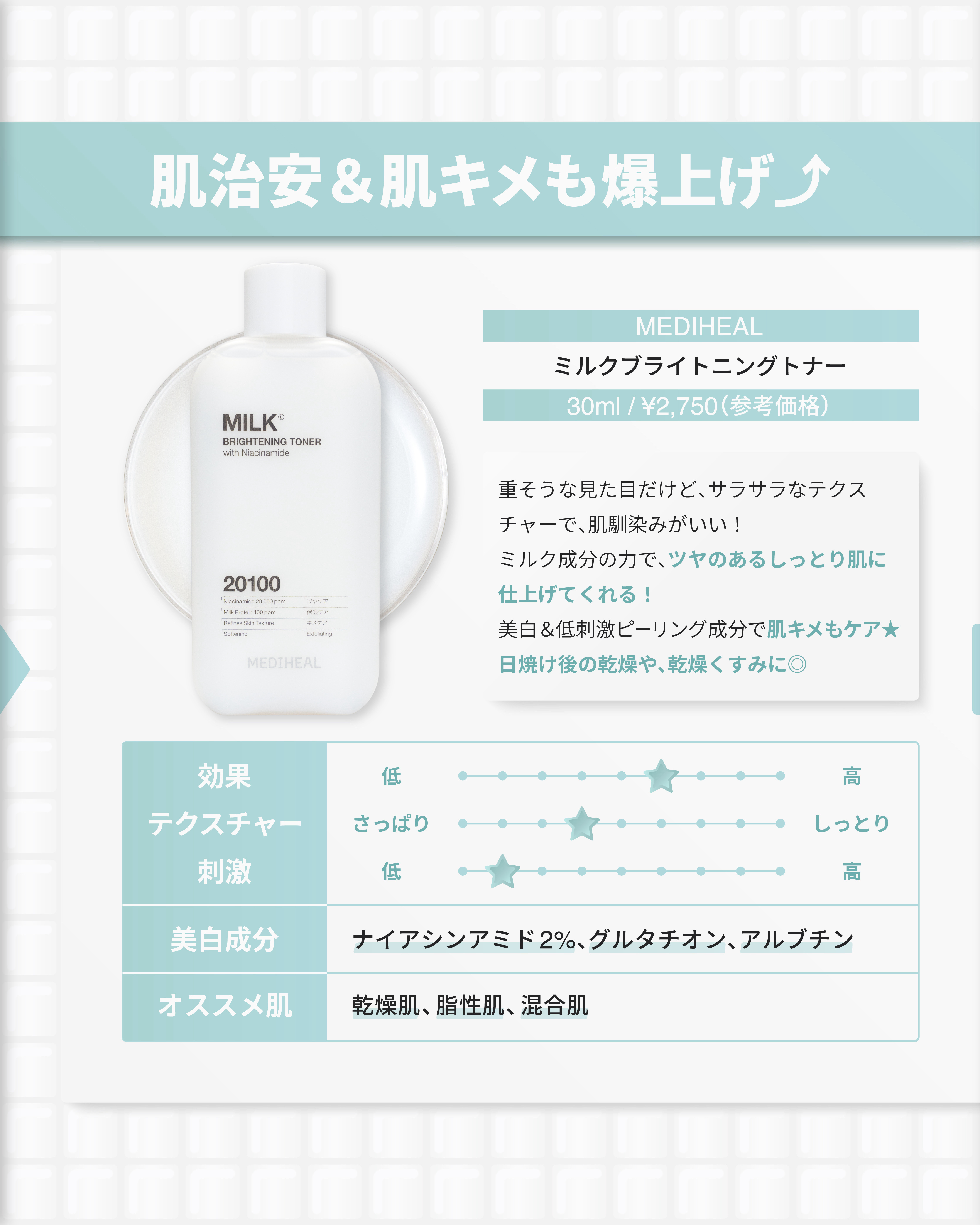 MEDIHEAL ミルクブライトニングトナー | 2,750円 |