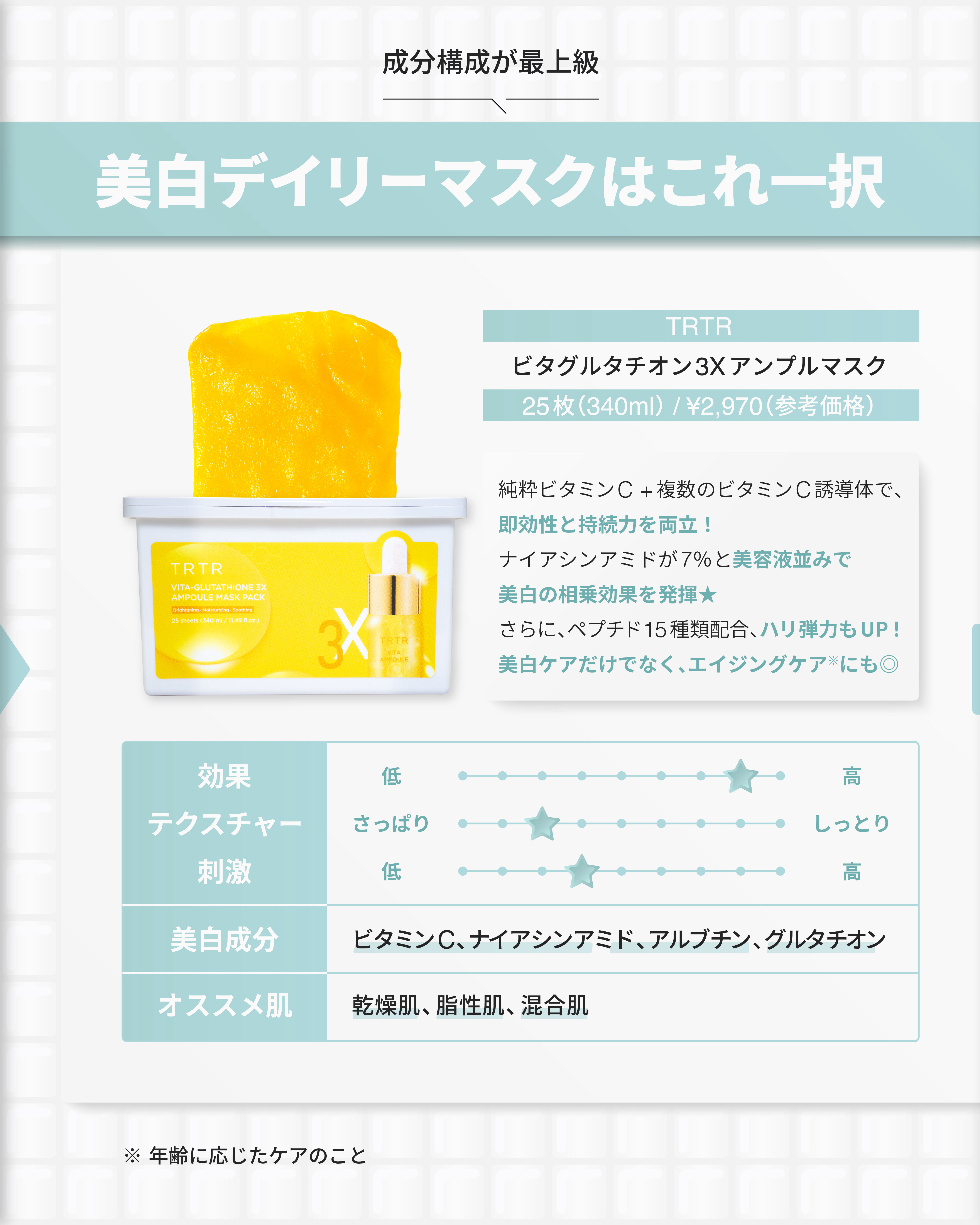 TRTR ビタ‐グルタチオン スリーエックス アンプルマスク | 3,500円 |