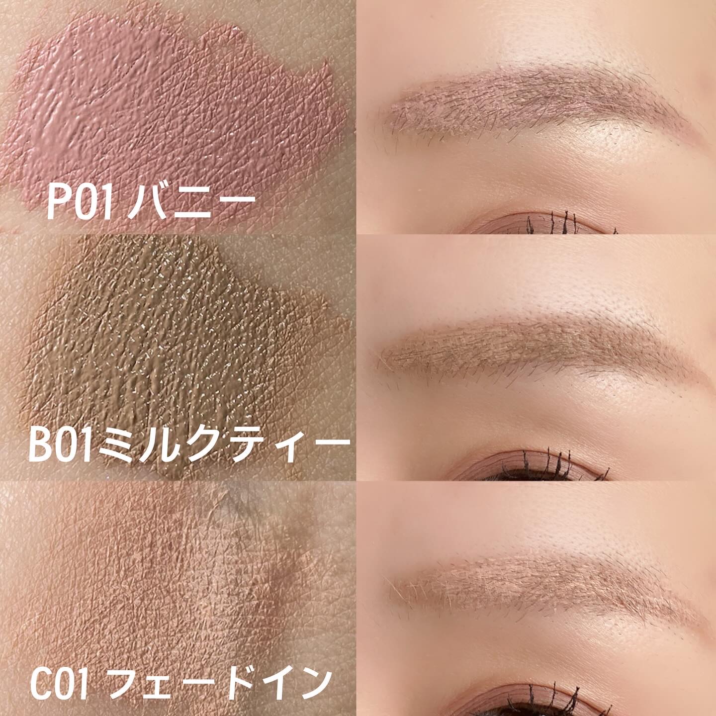 🧸▶︎▶︎▶︎𝐦𝐮𝐝𝐞.(@mude_official_jp)インスパイアスキニーブロウカラB01ミルクティーC01フェードインP01バニー♡...................♡1本1本を自然に整えてくれる、眉マスカラ✨小さめブラシだから...