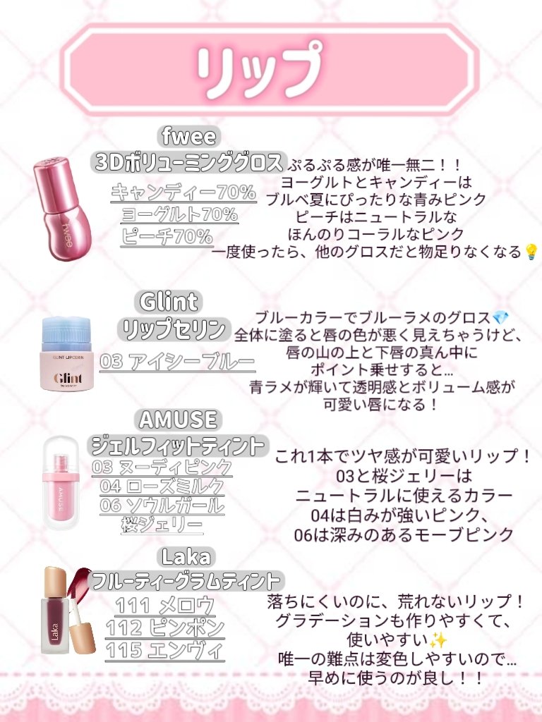 | 口紅・グロス・リップライナーランキング第9位 | すっごいみずみずしい🤩アプリケーターの角度も凄く塗りやすい🥰 | 詳細を見る | |