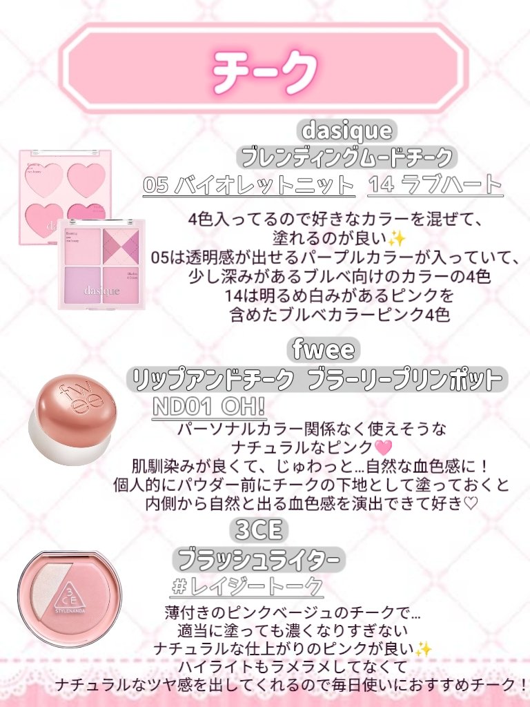 | チークランキング第1位 | ときめきチーク🥹見たまんまの綺麗な発色でツヤ感もあって良い♡ | 詳細を見る | |