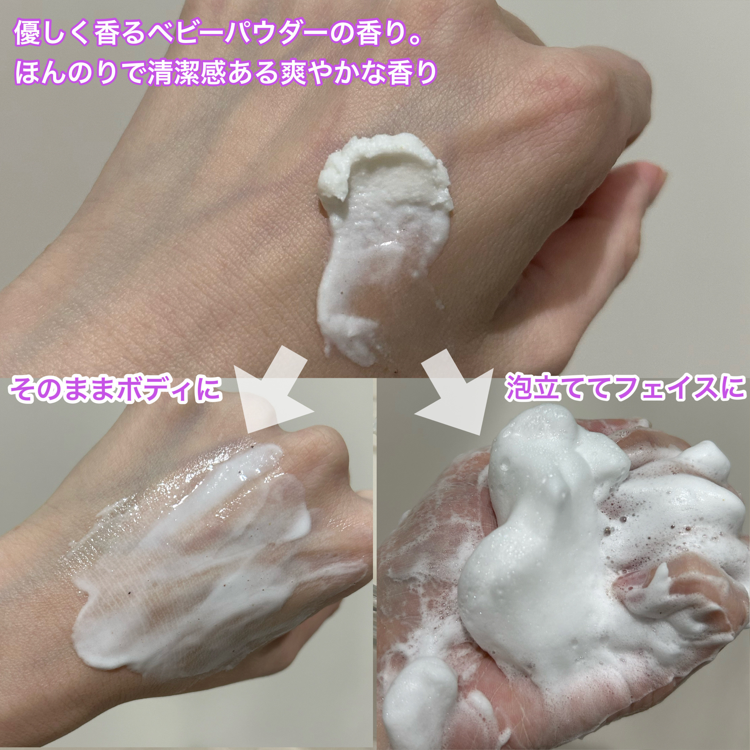 - ・商品説明 コラーゲン*1とAHA成分*2W配合の新発売スクラブ。 マシュマロのようなふわふわテクスチャーで角質オフ。 泡にして洗顔に、スクラブのままデリケートゾーンケアにも。 ・おすすめポイント ☆AHA成分*2で角質をすっきり。 ☆コラーゲン*1配合で肌にうるおいも。 ☆マシュマロのようなふわふわテクスチャー。 ☆泡にして洗顔に、スクラブのままデリケートゾーンケアにも。 ☆200gの大容量でこのお値段コスパ良し。 ☆ベビーパウダーの香りで癒しのひとときを。 *1保湿成分 *2角質ケア成分