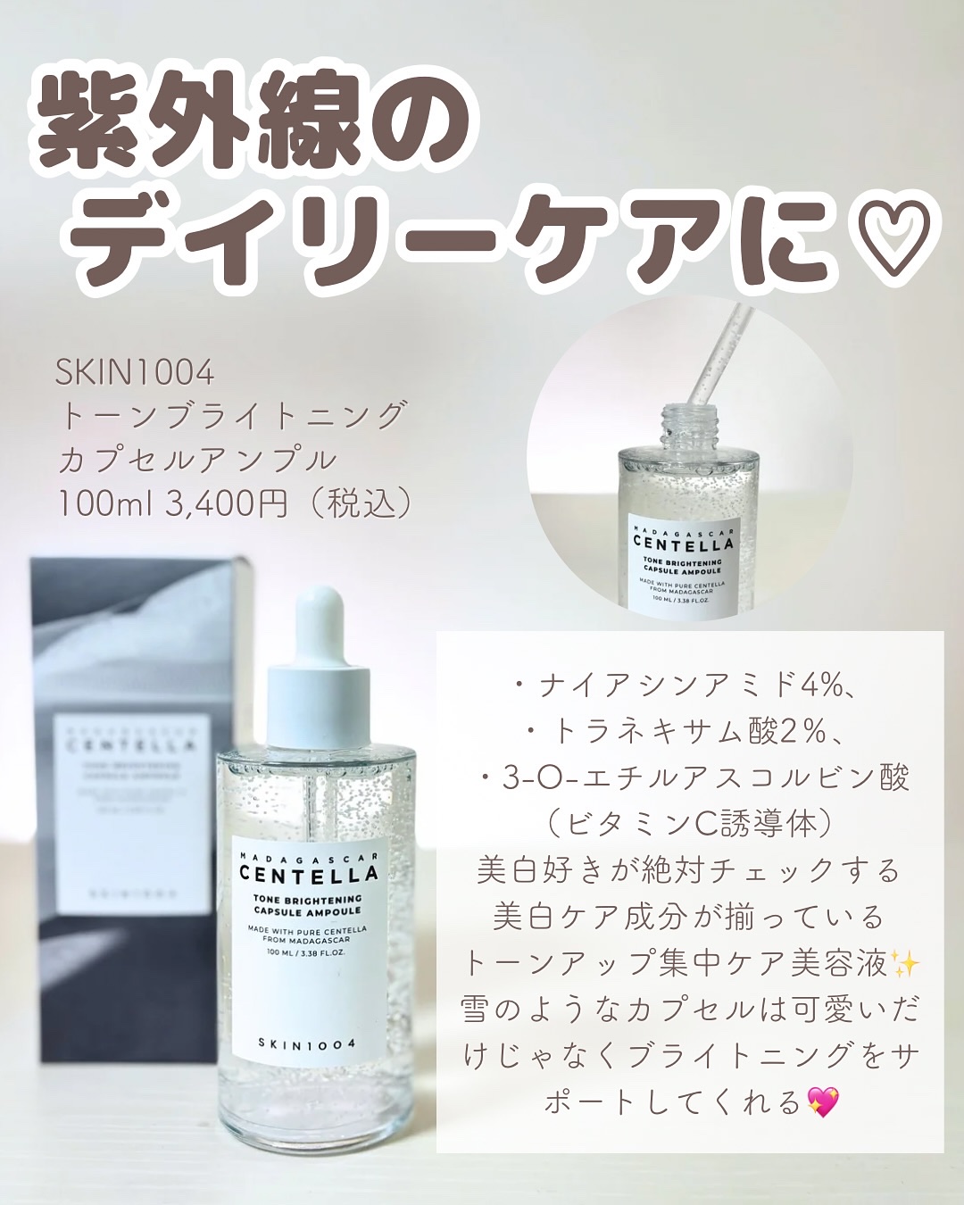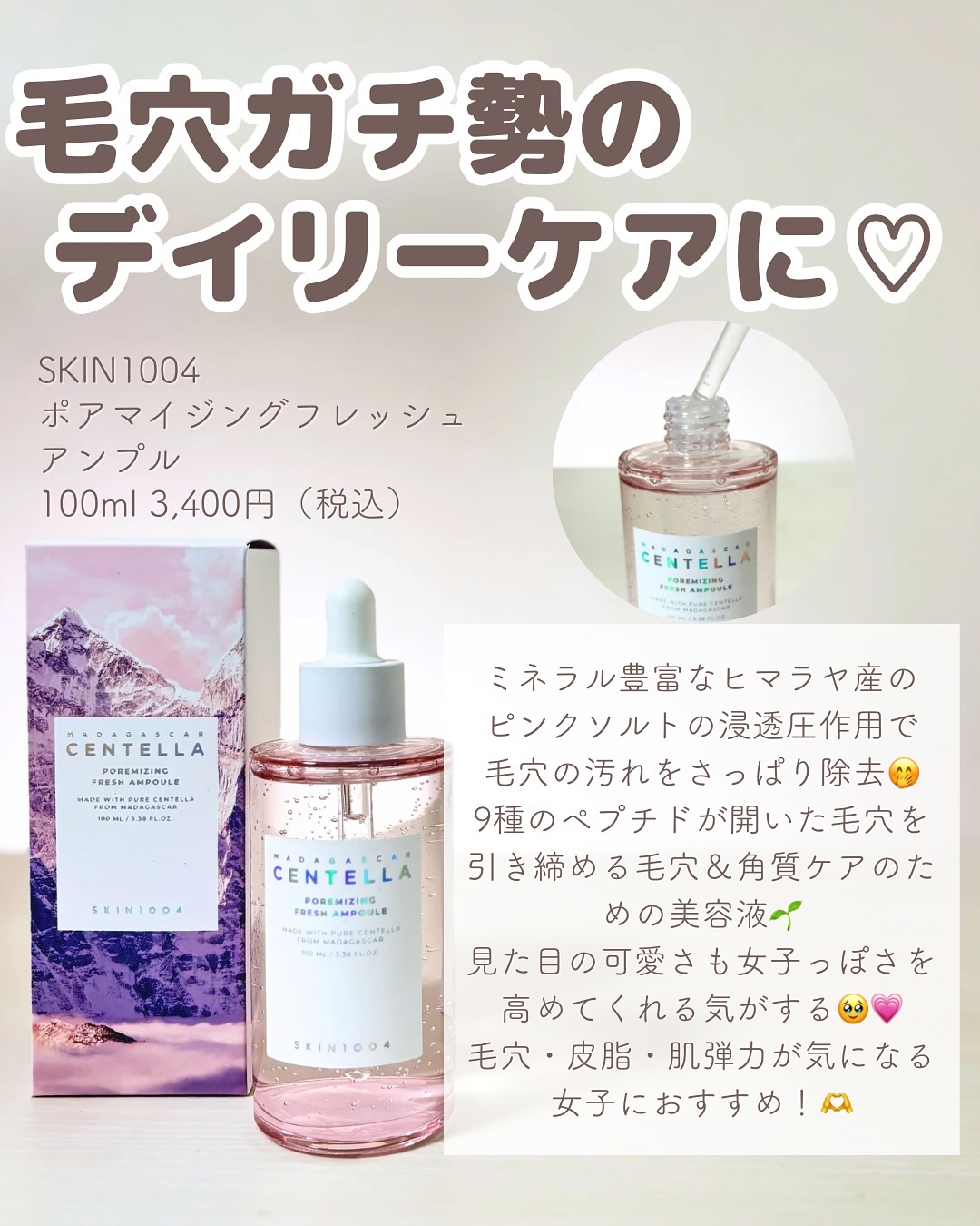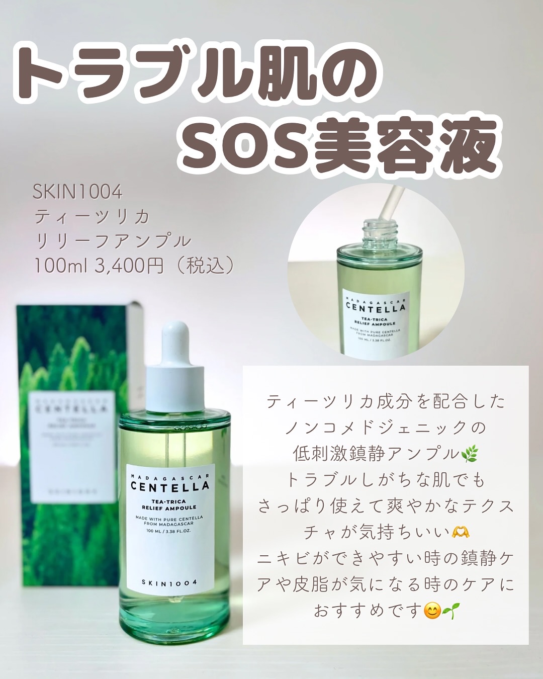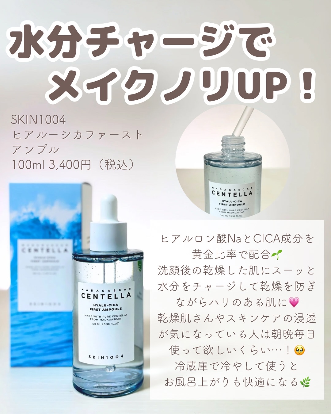 韓国発スキンケアブランド『SKIN1004(スキンワンオーオーフォー)』 プロバイオシカ インテンシブ アンプルを使ってみました♫ 低価格で高品質なアイテムを展開していることでもお馴染みの自然派スキンケアブランド テクスチャは手を傾けてもサ〜〜っと垂れ落ちないもっちりとした濃厚さがあるのにベタつくことなく肌に馴染んでくれます。