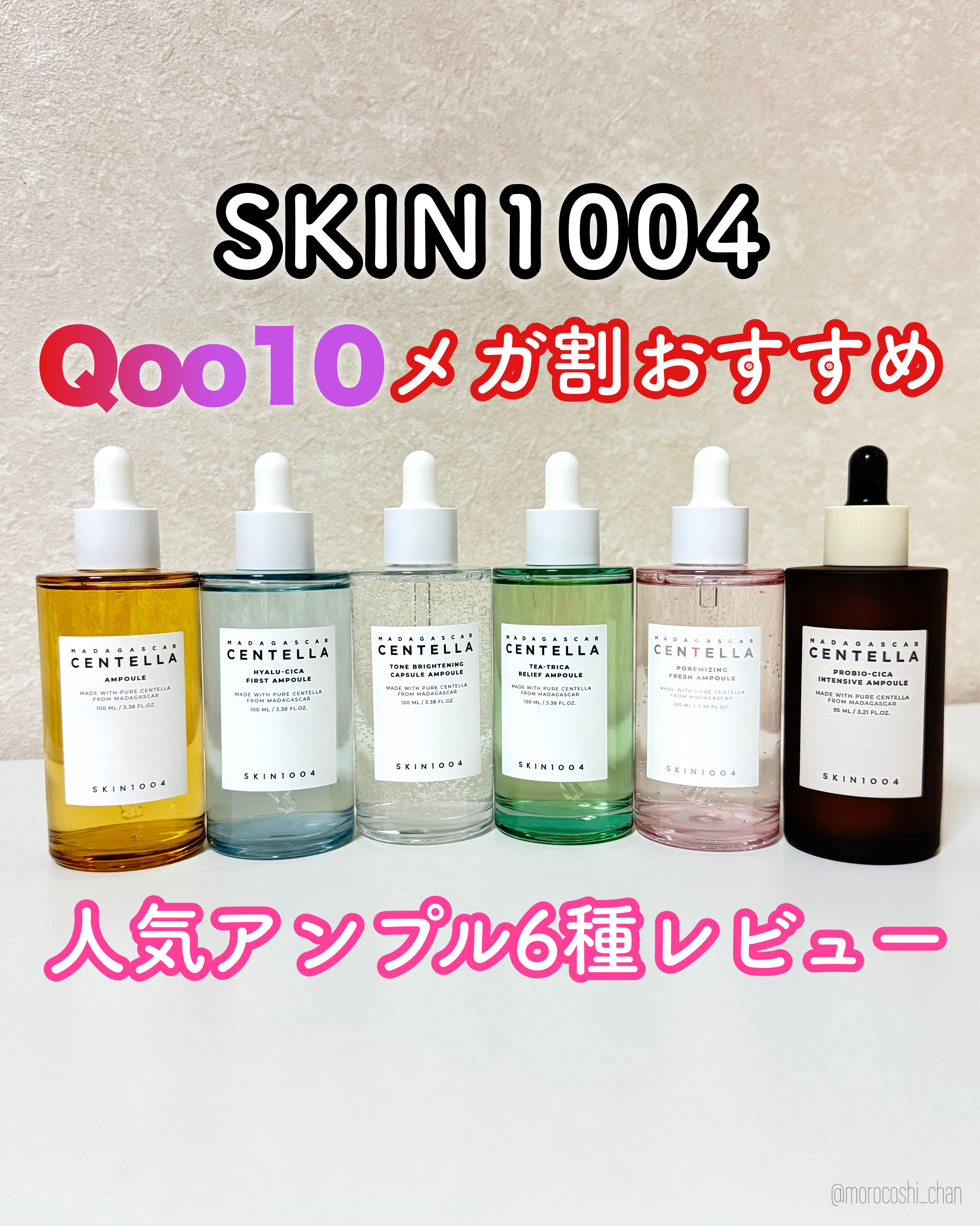 #Qoo10メガ割|@skin1004_japan\肌悩みに合わせて選べる!SKIN1004の人気アンプル6種✨/Qoo10でも大人気のアンプルを一気にご紹介します💁♀️💛センテラアンプルマダガスカル産の高濃度CICA(ツボクサエキス)を配...