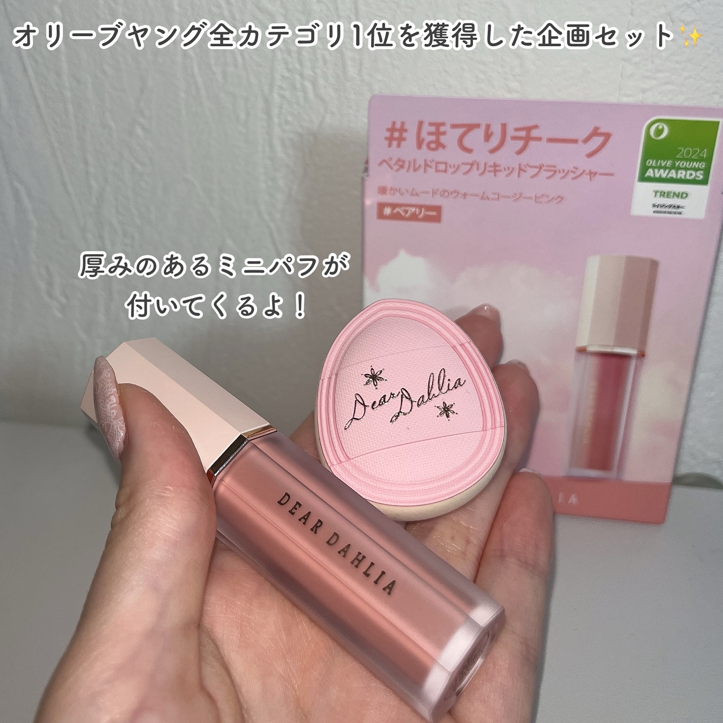 【PR】じゅんわりリキッドチーク🎀CosmeReMake様のモニターに当選し商品提供いただきましたDEARDAHLIAペタルドロップリキッドブラッシャー企画品オリーブヤング全カテゴリ1位を獲得した企画セット(24年5月29日基準)ペタルドロッ...
