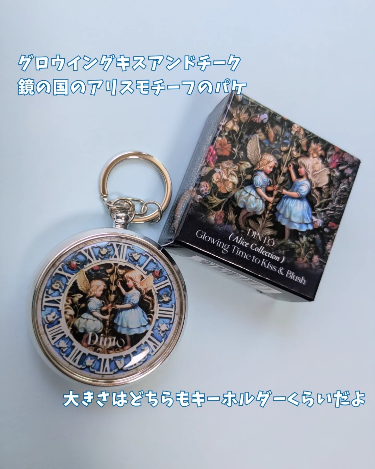 Dintoさま(@dinto_official)から頂きました🩷アリスコレクションブラーリング/ブライトニングタイムトゥキス&ブラッシュ🐰♥️まずパケが大優勝なリップ&チーク白うさぎの懐中時計イメージで、キーリングになっているのでカバンにつけ...