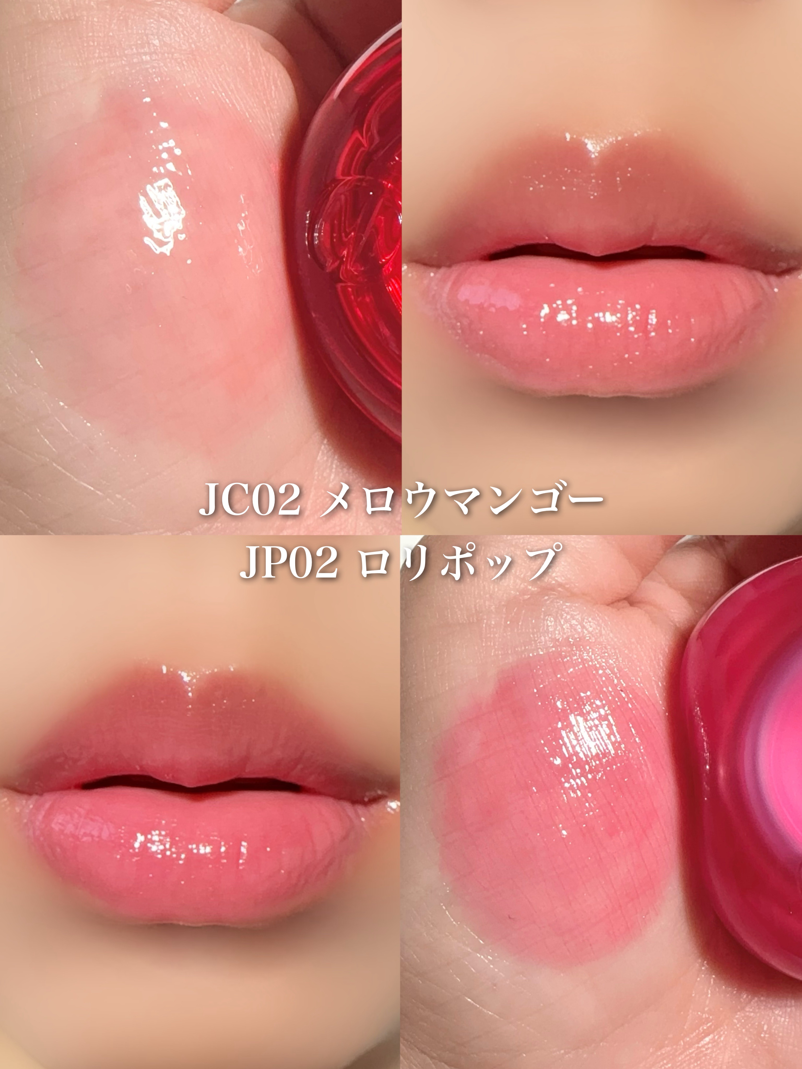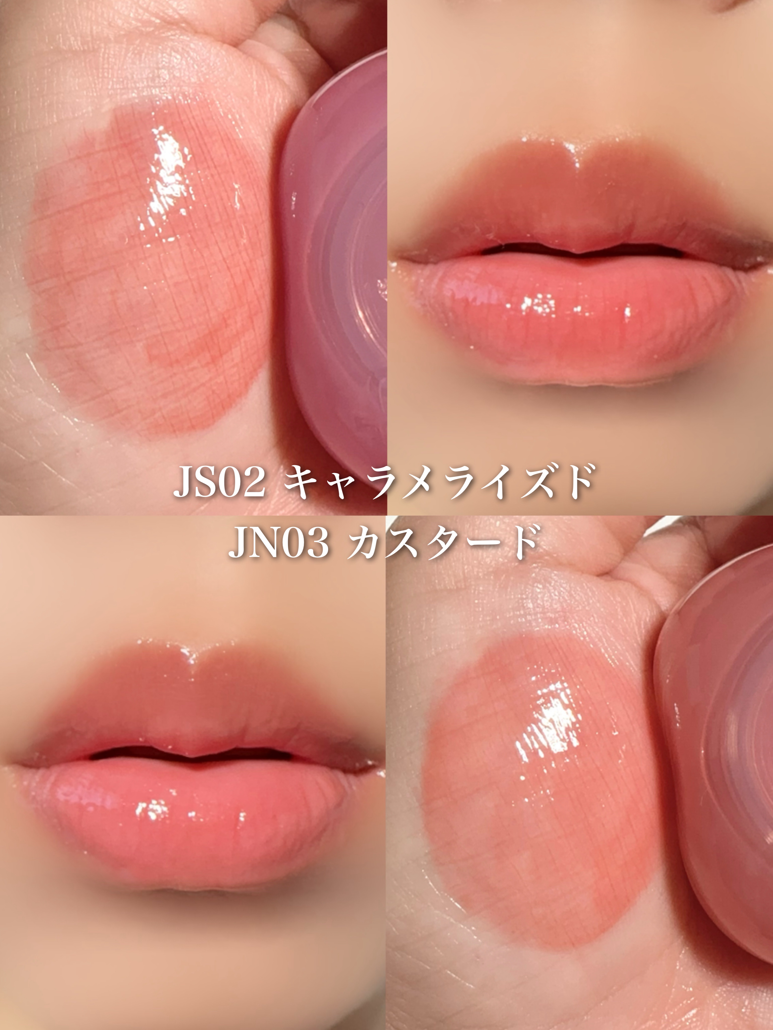 ねっちょりボリューム感あるテクスチャーだけど、ベタつきなく使いやすい。 ティントじゃない普通のグロスだから色もちは良くない。 発色ナチュラルだからこれだけでもいいけど、他のリップと合わせても可愛い!!