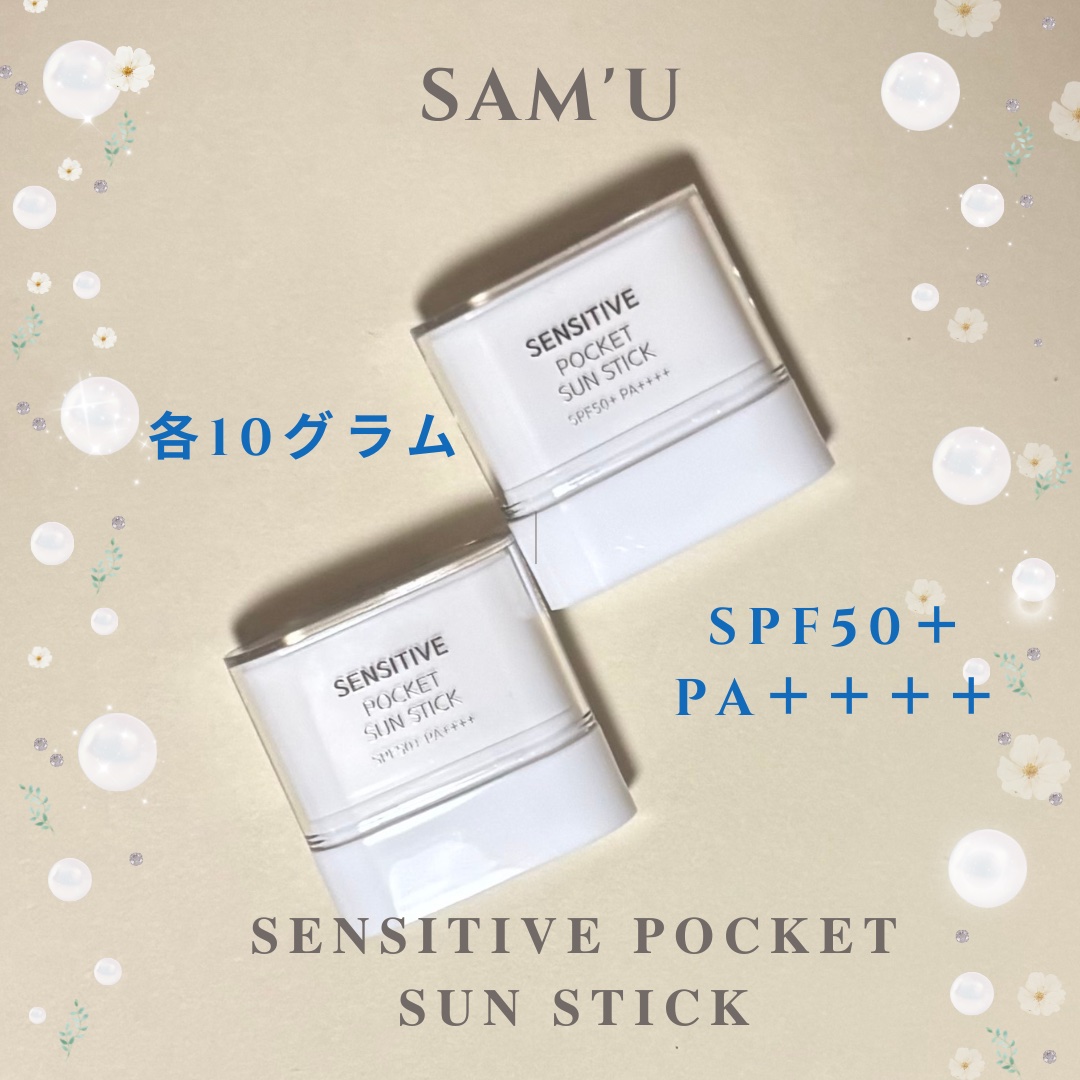 _SAM'USENSITIVEPOCKETSUNSTICKサミュセンシティブポケットサンスティックSPF50+/PA++++10g×2ea/¥3,300(Qoo10公式より)【小さいのに強力なUVブロック!】べたつきなくフェイスやボディへいつ...