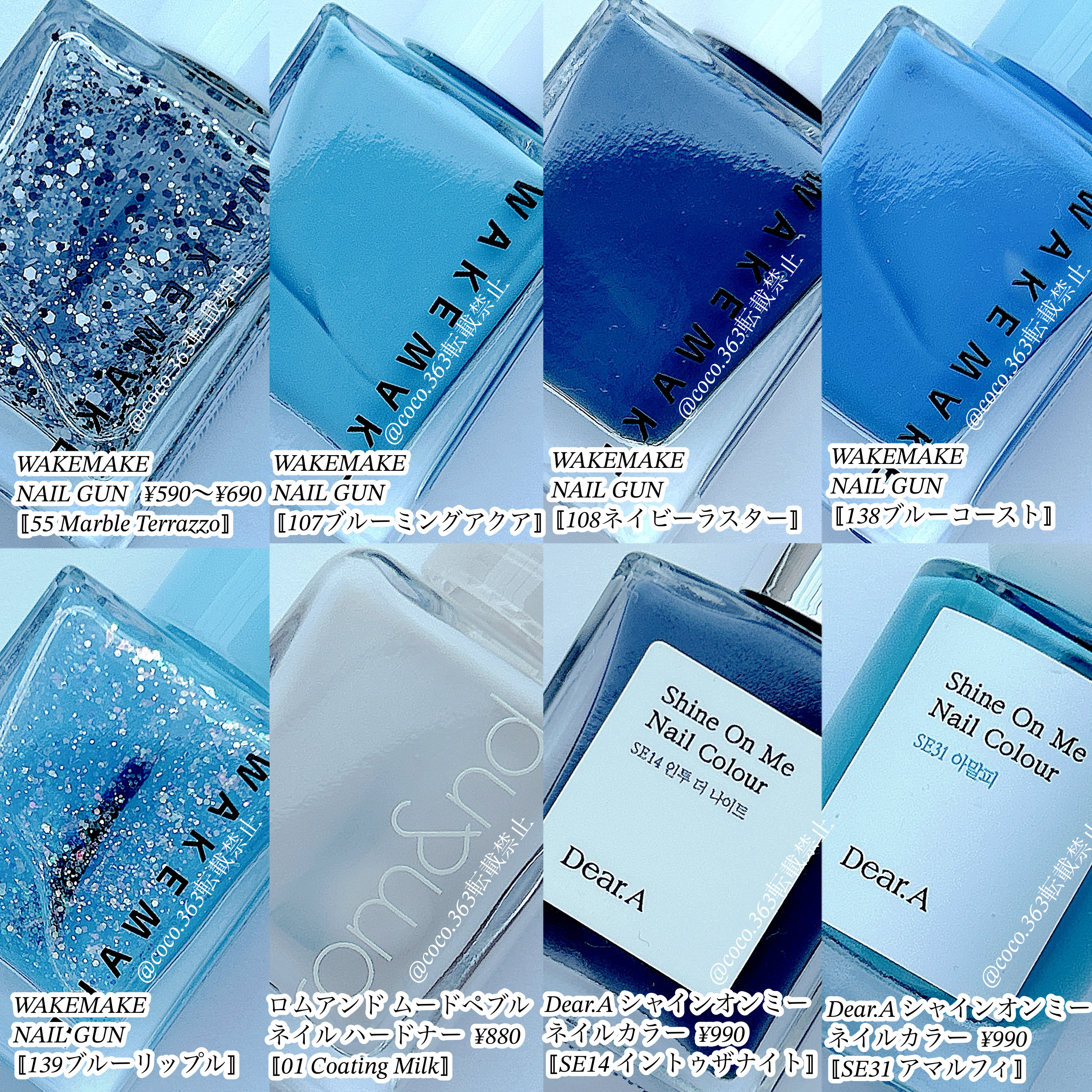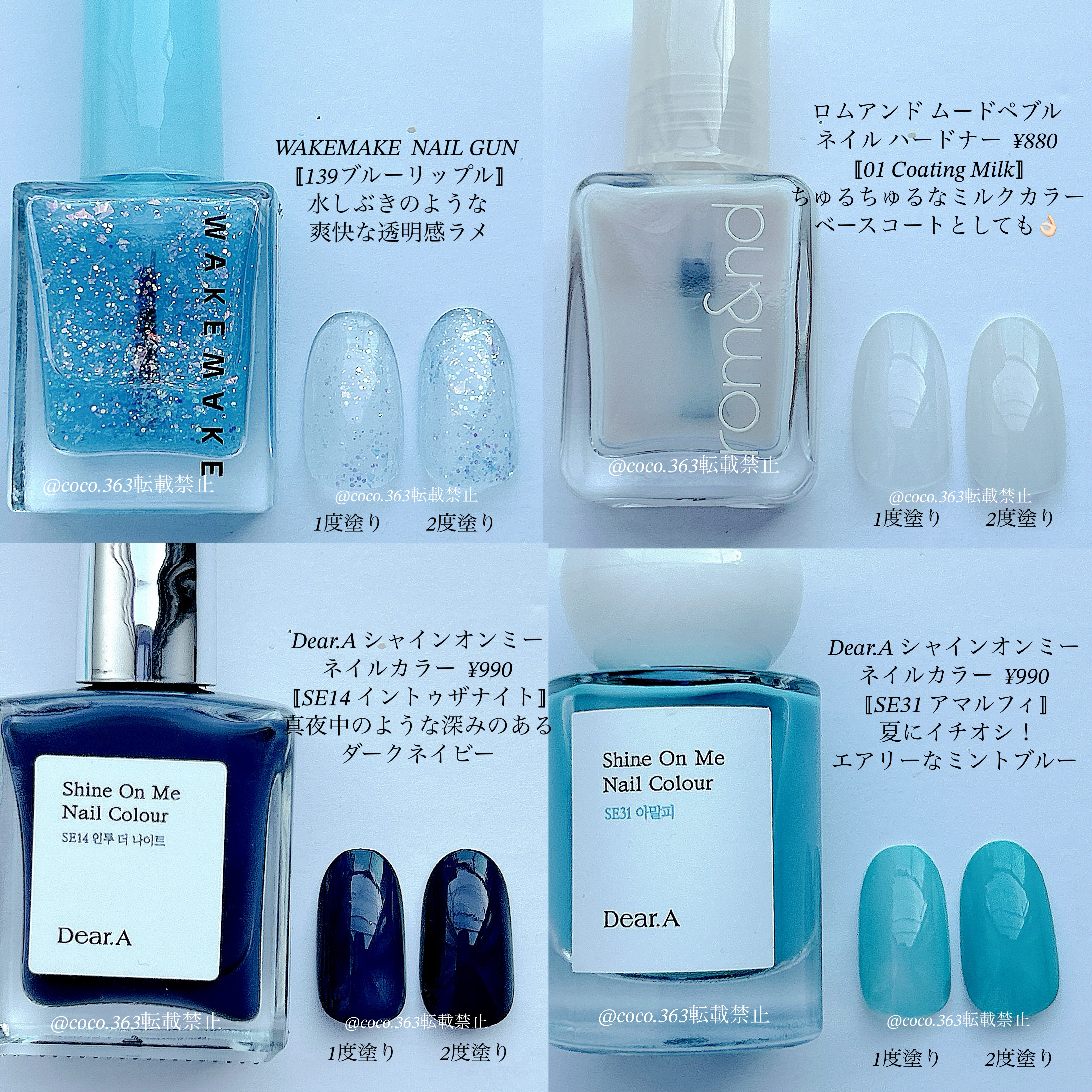 N28 スモーキーアクア N44 シックグレー N52 マーメイドスケール N57 インディゴブルー N82 クラウドレススカイ N85 9PMは以前の限定ですが amazon等のECサイトで 定価で購入できるので 気になる方はぜひ🫶🏻