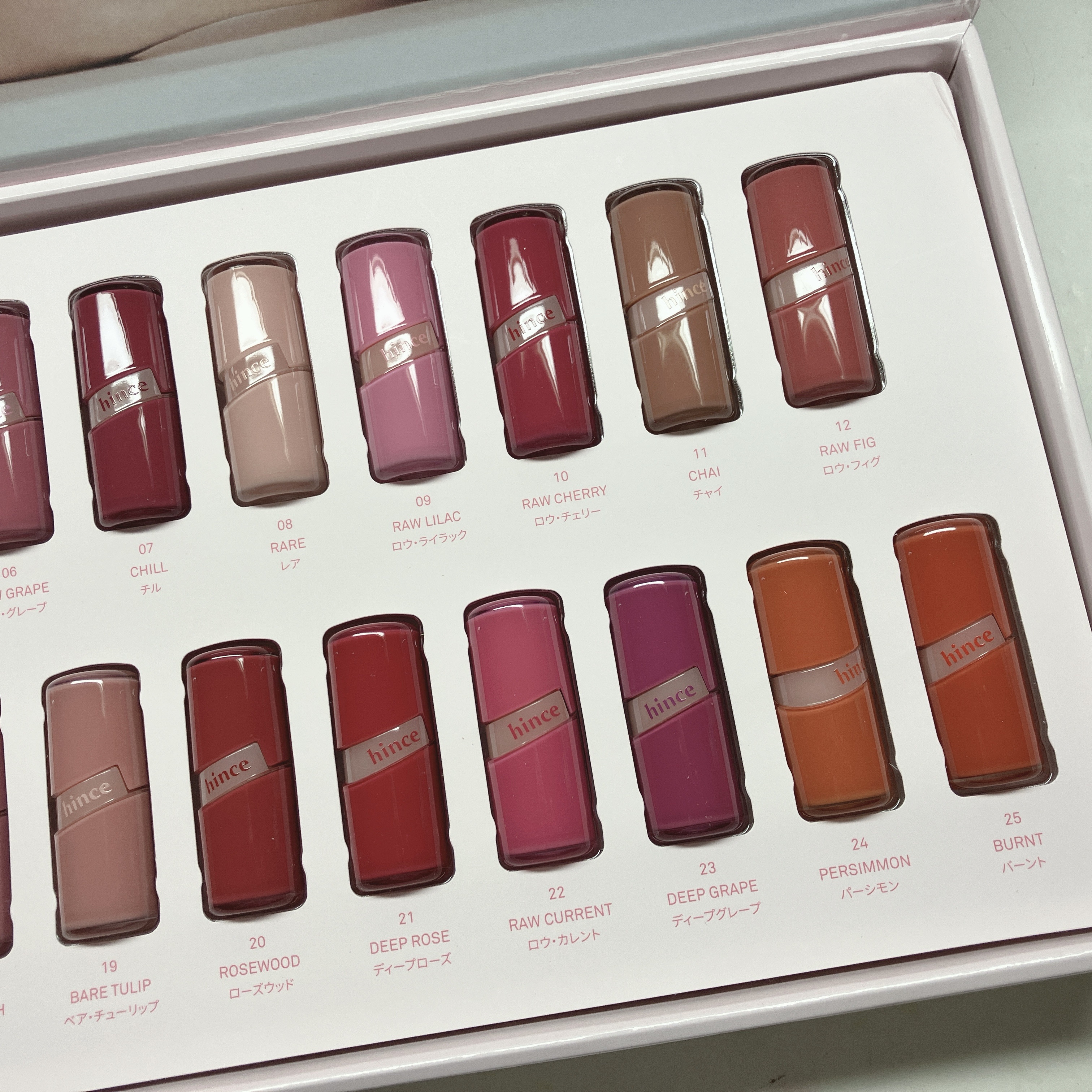 hince様から商品提供をいただきました☆ベストセラーリップのミニサイズバージョン!透明感あふれるじんわり澄んだ発色で自然な光沢感ある仕上がりにしてくれるそうです◎コンパクトな可愛いサイズ感で全25色の豊富なバリエーションも良いですね!透明感...
