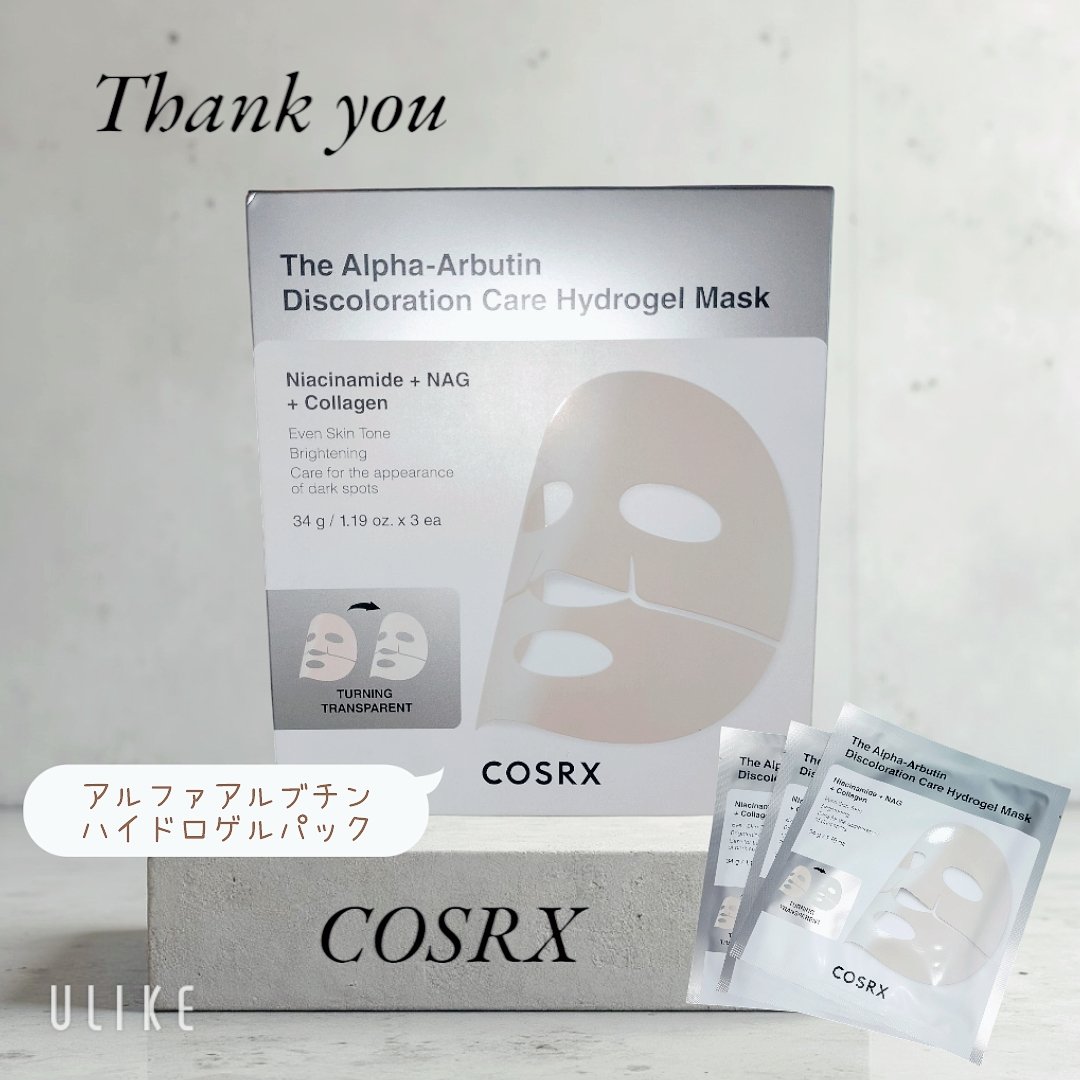 COSRXニキビ跡ケアセット🖤⛓️RXザ・アルファアルブチンハイドロゲルパック¥1,650(税込)4枚入りアルファブチンのトラブル跡トーニングケアで澄んで明るいトーニング光彩肌✧︎*。今大人気の長時間パック𓆩❤︎𓆪プルンプルンのシートマスクで...