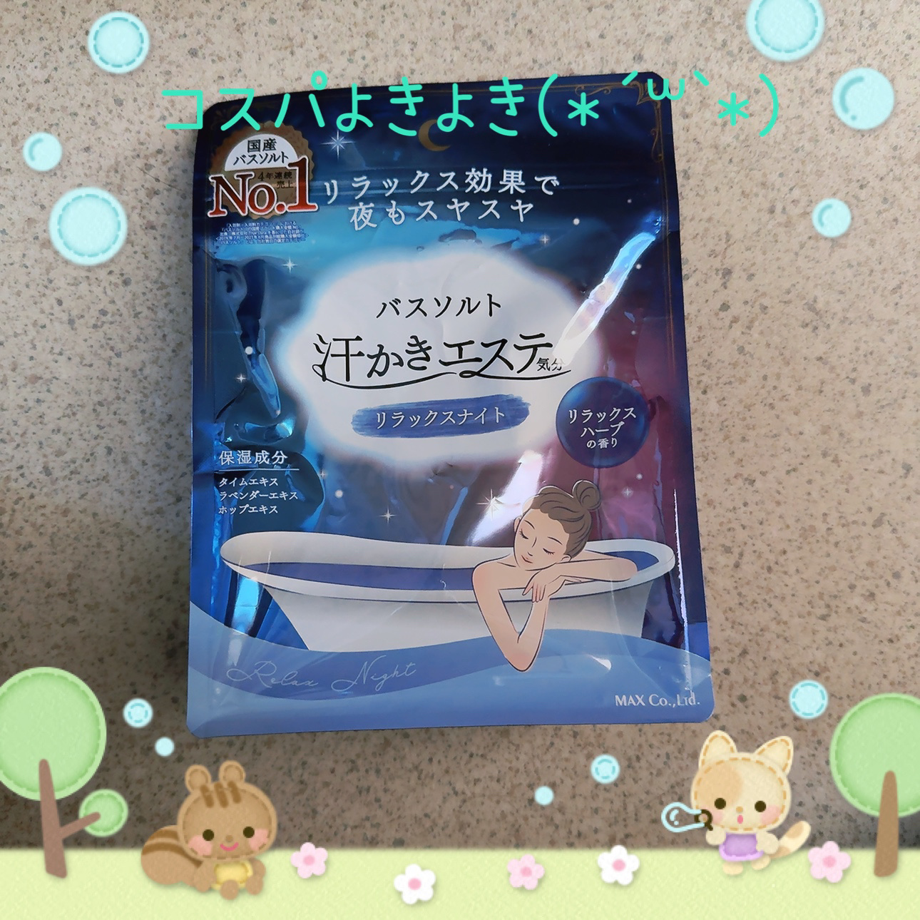 マックス汗かきエステ気分リラックスナイト1日の締めくくりにゆったりとバスタイムを38℃〜40℃のややぬるめのお湯にゆっくり長く浸かることで汗をかきやすくなります✨️✨️お肌のひきしめ成分として天然塩と死海の塩を配合保湿成分としてタイムエキス・...