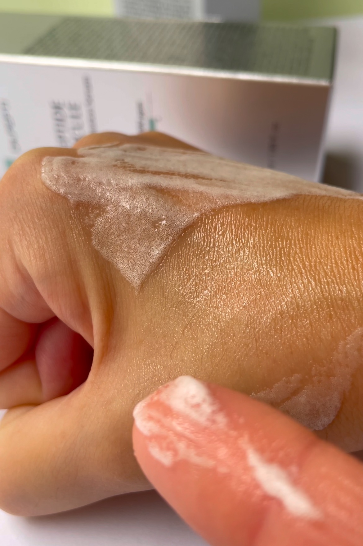 | なめらかなクリームのようなテクスチャーですが、 塗り広げて少しすると泡が立つ不思議な使用感! | 詳細を見る |
