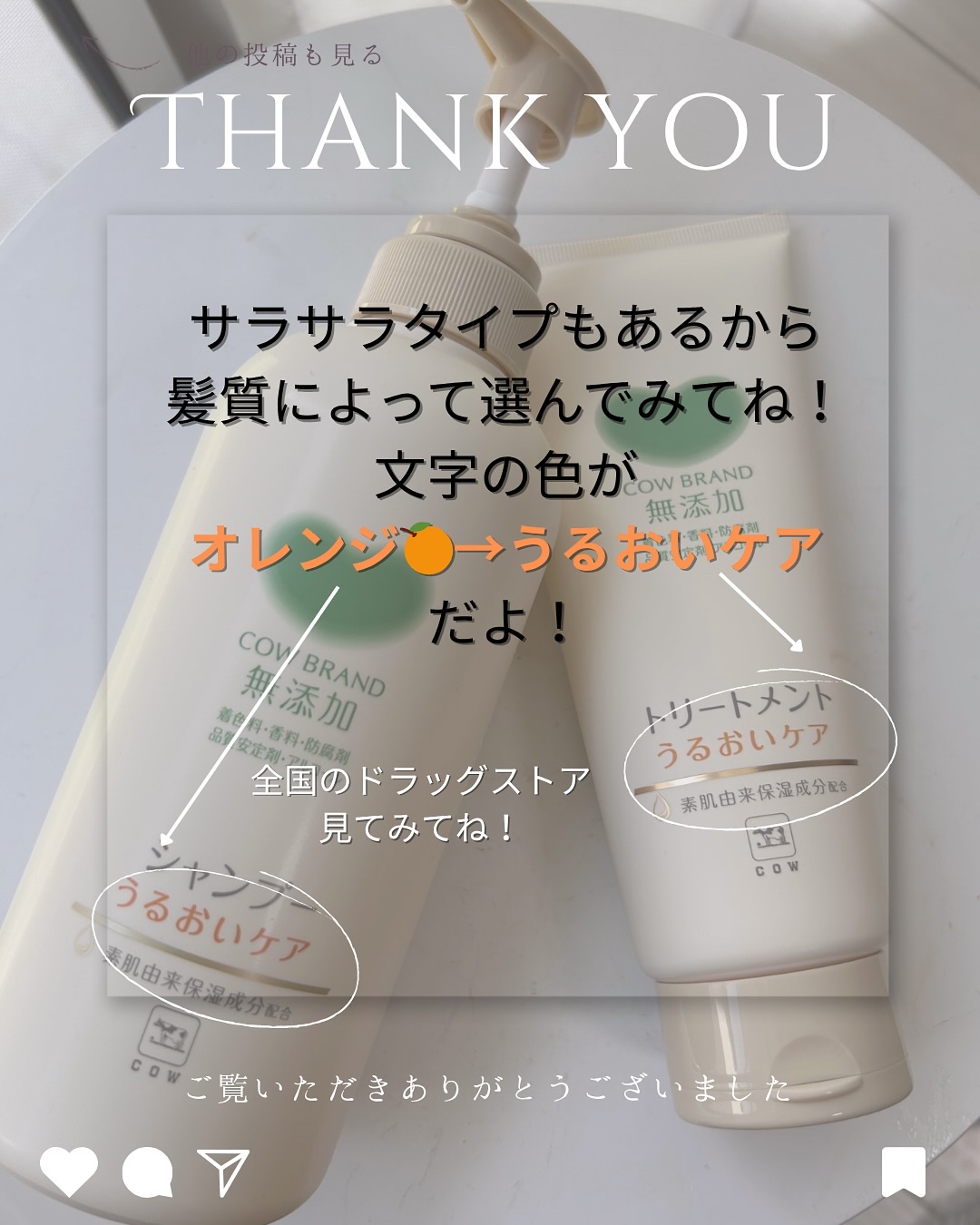 \髪の毛もスッピンにリセット🫧/カウブランド無添加シャンプー&トリートメント うるおいケア 470mL¥1,000円/180g¥700円メイク落としミルクや洗顔がSNSでバズっている「カウブランド無添加」のシャンプー&トリートメントが2...