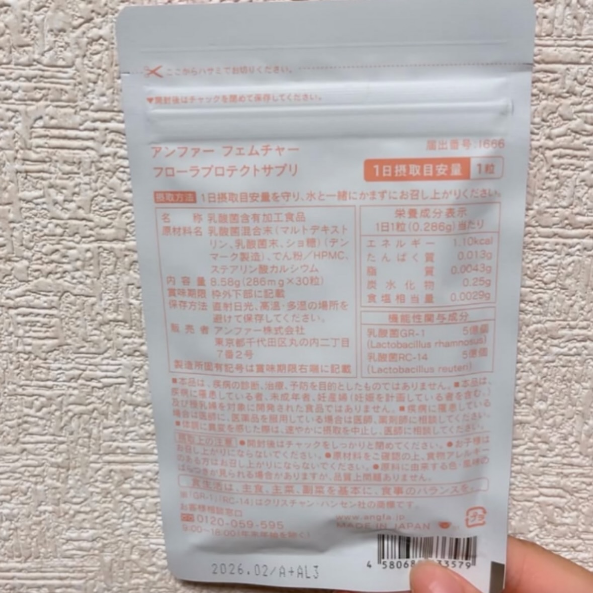 デリケートゾーン用乳酸菌サプリ、フローラプロテクトサプリ🕊️ 膣内環境を整えるWの乳酸菌を配合した機能性表示食品。 知ってるブランドの商品だと使うハードル下がるよね。
