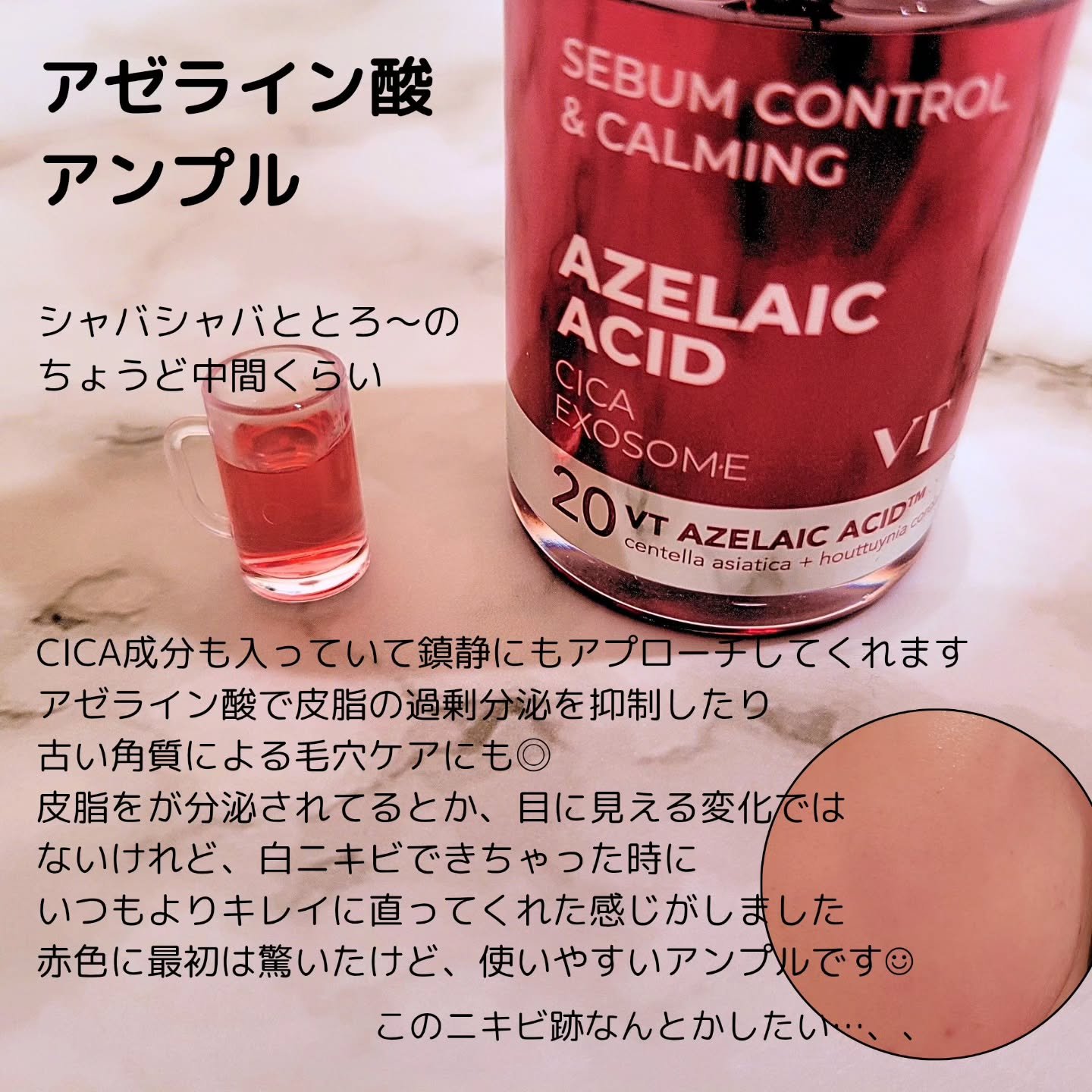 VTさまからいただきました❤︎VTAZケアクレンジングオイルA1カーミングアンプルAZケアトナーパッド大人気のアゼライン酸セット🫶🏻️̖́-ニキビに悩んでる方絶対このセット買うのおすすめ!以前7日チャレンジを参加させていただいたんで...
