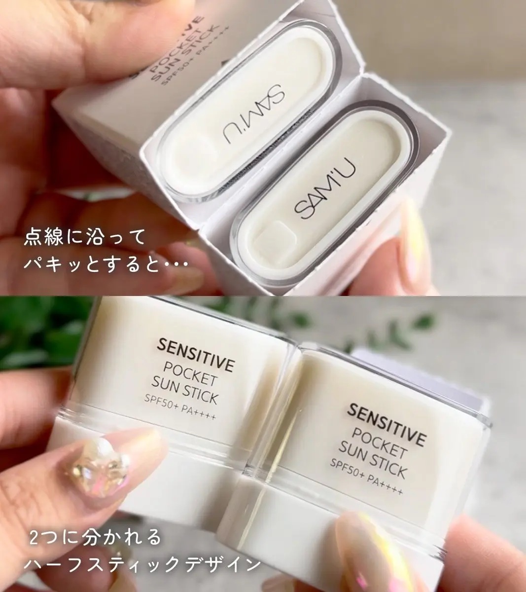 #PR@sam_u_jpサミュ公式アンバサダー投稿です𓂃𓈒𝐒𝐀𝐌'𝐔センシティブポケットサンスティックSPF50+PA++++10g✕2個入りポーチにすっぽり入るサイズで持ち運びも便利!AirPodsくらいのサイズ感◎お家と持ち運び用や、お友...