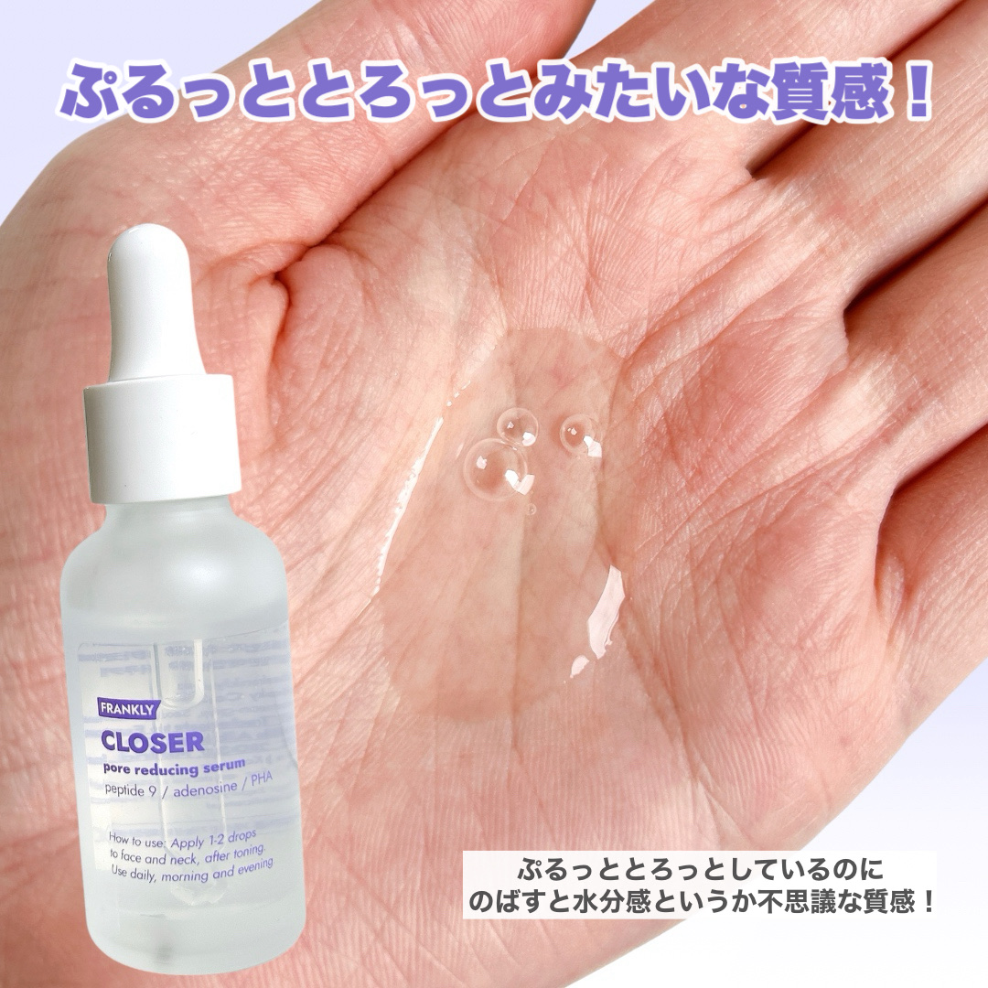 #PR#FRANKLYクローザーセラム💜9種のペプチドとアデノシン、PHA配合のセラムでお肌に潤いを与えてキメの整った健康的なハリツヤ肌にアプローチしてくれる美容液😘フランクリーさんのブランド名は聞いた事あったのですが、今回初めて使わせてもら...