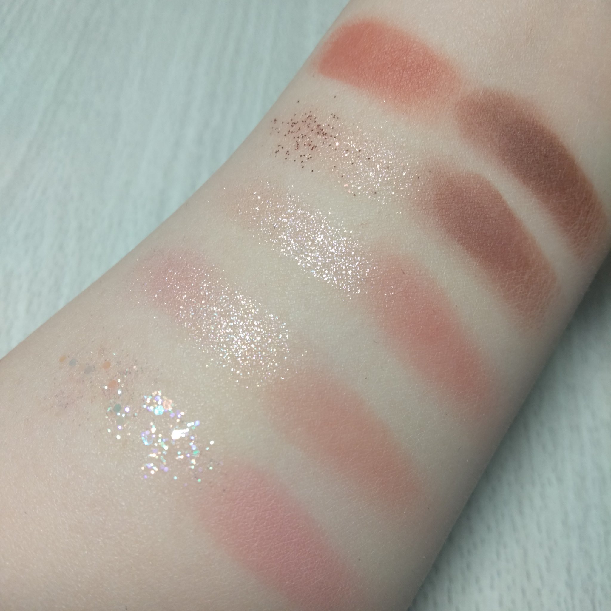 WAKEMAKEのベースアイテムを愛用しているので今回はアイシャドウを購入しました💭 8番は16色のパレットで濃淡が違う同系色がまとまっています💗 私の1番のオススメは上段の右から2番目のキラキラがキレイ💖